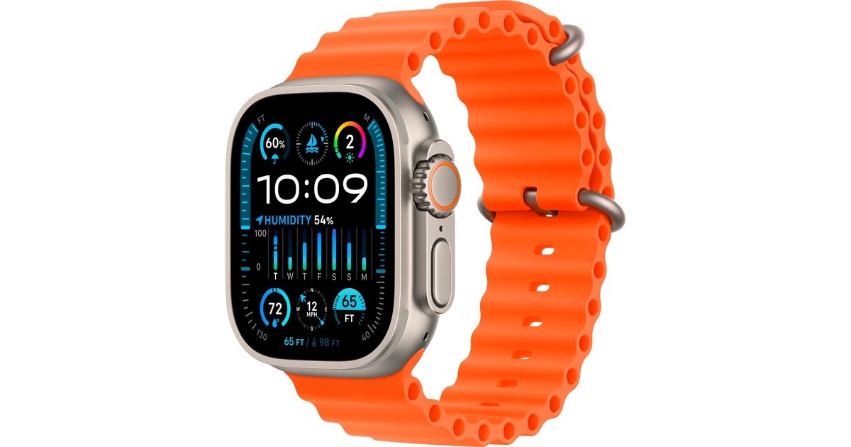 Aktionstaste, Digital Crown, Wassertemperatur Sensor, Temperaturerkennung, Notruf SOS, Unfallerkennung, Sturzerkennung, IPX6 Schutzklasse, GNSS, U1 Chip, Doppeltipp-Geste, On-Device Siri, Sirene |