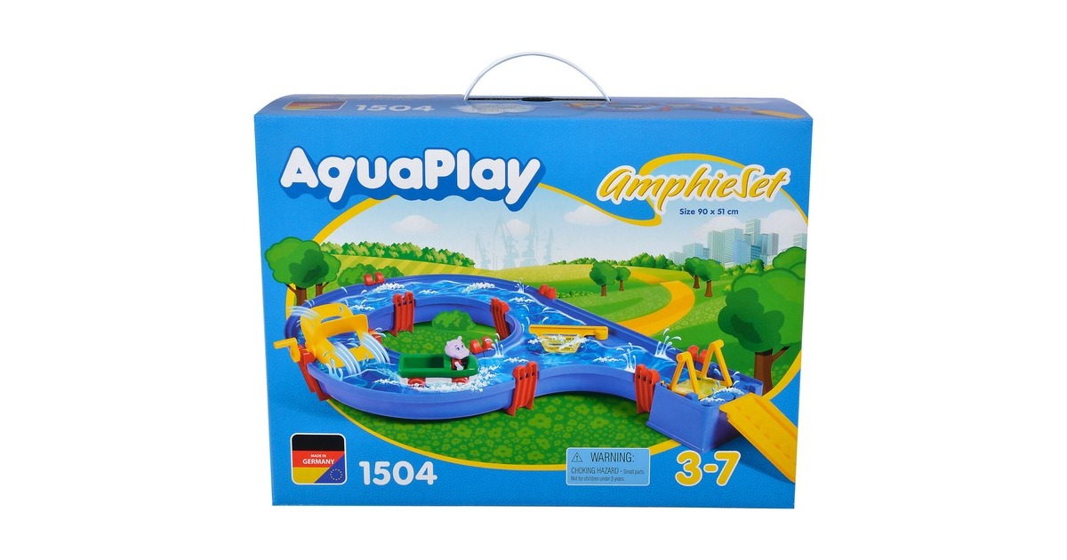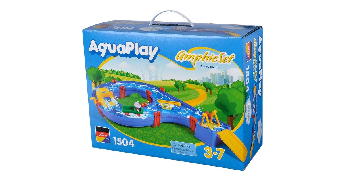 Das AquaPlay AmphieSet ist das perfekte Einsteigerset in die große Wasserwelt von AquaPlay. Das handliche Set macht alleine bespielt schon richtig viel Spaß, aber lässt sich natürlich auch mit anderen AquaPlay Sets zu einer tollen Wasserwelt verbinden. Die große Auffahrtrampe ermöglicht dem BIG AmphieTruck das Einfahren in die Wasserstraße. Inklusive ist außerdem die Spielfigur Wilma, das fröhliche Nilpferd. Die nötige Strömung und die richtige Fahrtrichtung können die kleinen Spieler durch die leicht zu drehende Handkurbel mit großen Schaufelflächen bestimmen. Die Wasserstraßen und die liebevollen Details des Spielsets sorgen für langes Spielvergnügen. Das Spielset AquaPlay AmphieSet ist für Kinder ab drei Jahren geeignet.Art.-Nr.: 1678230