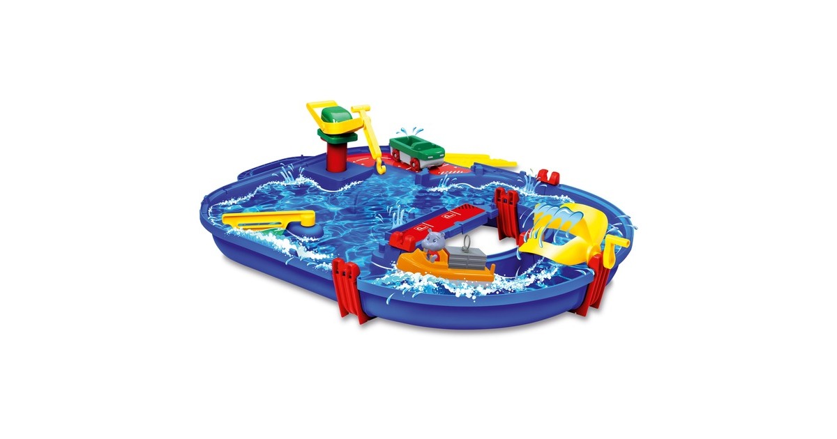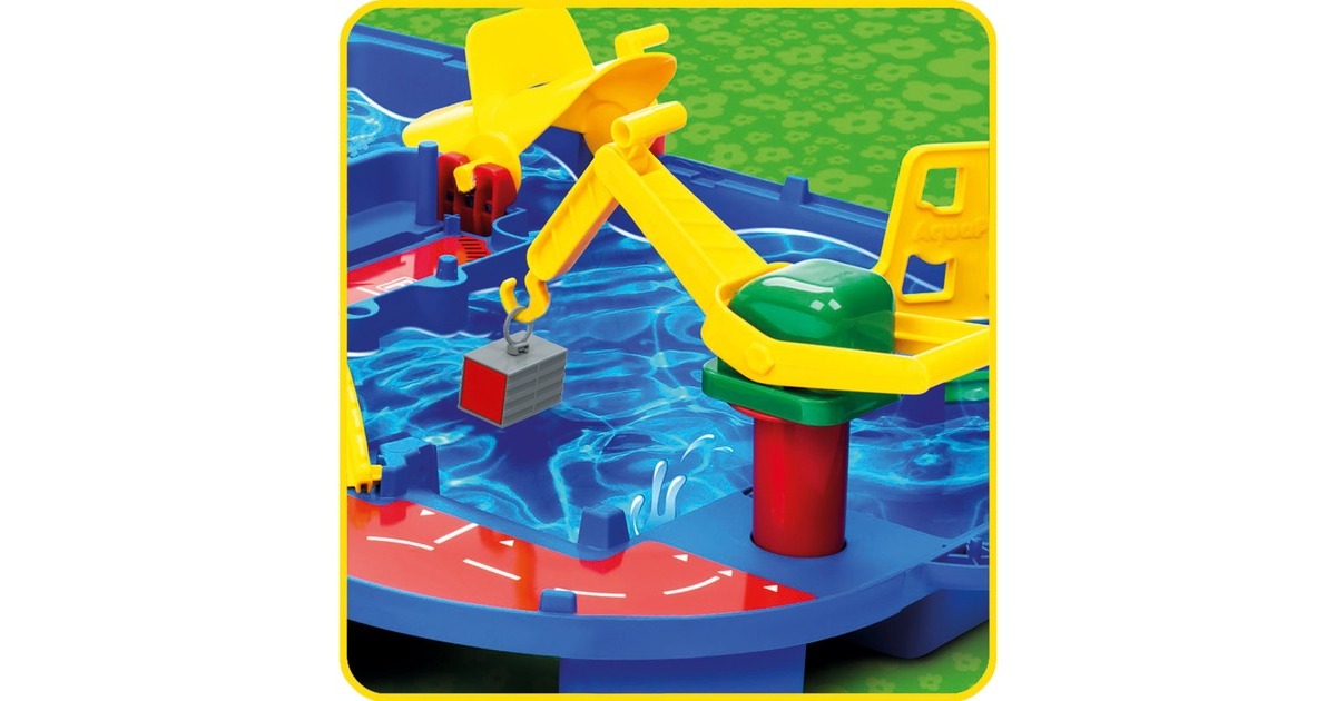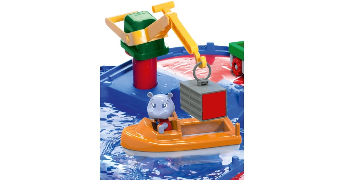 Gemeinsam mit dem freundlichen Nilpferd Wilma erleben Kinder mit dem AquaPlay StartSet aufregende Abenteuer mit dem Element Wasser. Das Wasserkanalsystem verfügt über ein großes Hafenbecken mit Ladekran, ein Containerboot mit Ladung und ein Amphibienfahrzeug. Mit Hilfe der Handkurbel mit Paddel kann die Richtung der Strömungen bestimmt werden. Kinder lernen so spielerisch das Element Wasser kennen. Dieses Starter-Set lässt sich leicht durch andere Wasserbahnen und Verbindungsstücke erweitern.Art.-Nr.: 1393666