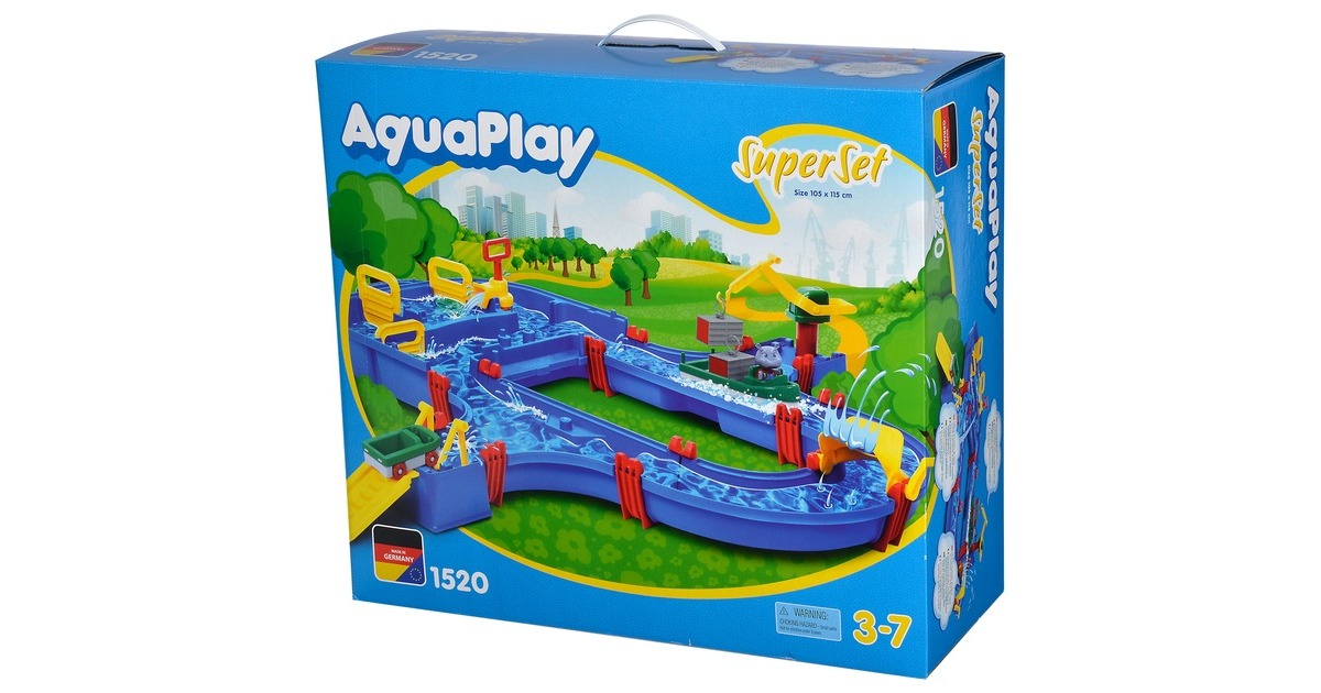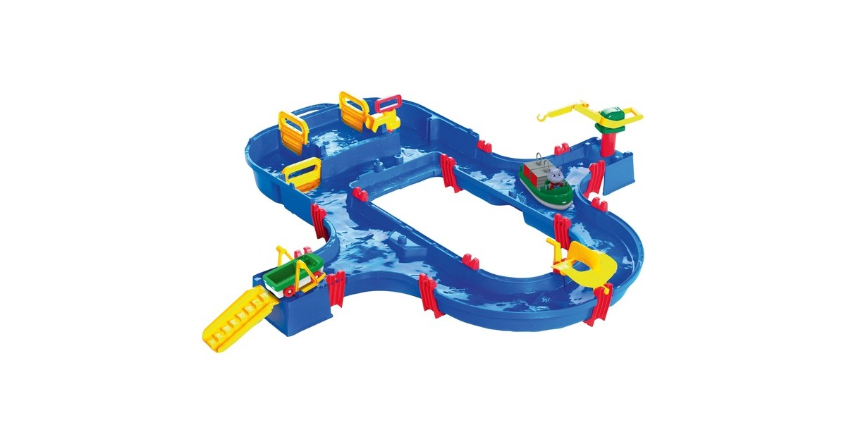 Im Handumdrehen lässt sich aus den 29 Teilen des AquaPlay SuperSets eine große Spielwelt Hafenbecken, Schleuse und Anlegestelle bauen. Im Set sind eine Handpumpe, eine große Wasserkurbel, ein Amphibienfahrzeug und ein Containerschiff sowie die Nilpferd-Spielfigur Wilma enthalten. Mit viel Spaß und Fantasie lernen Kinder das Element Wasser kennen, wie Strömungen entstehen und sich deren Richtung bestimmen lässt und wie Wasser Boote anheben und bewegen kann. Dieses Set kann zudem einfach mit Teilen aus der AquaPlay-Serie erweitert werden.Art.-Nr.: 1393671