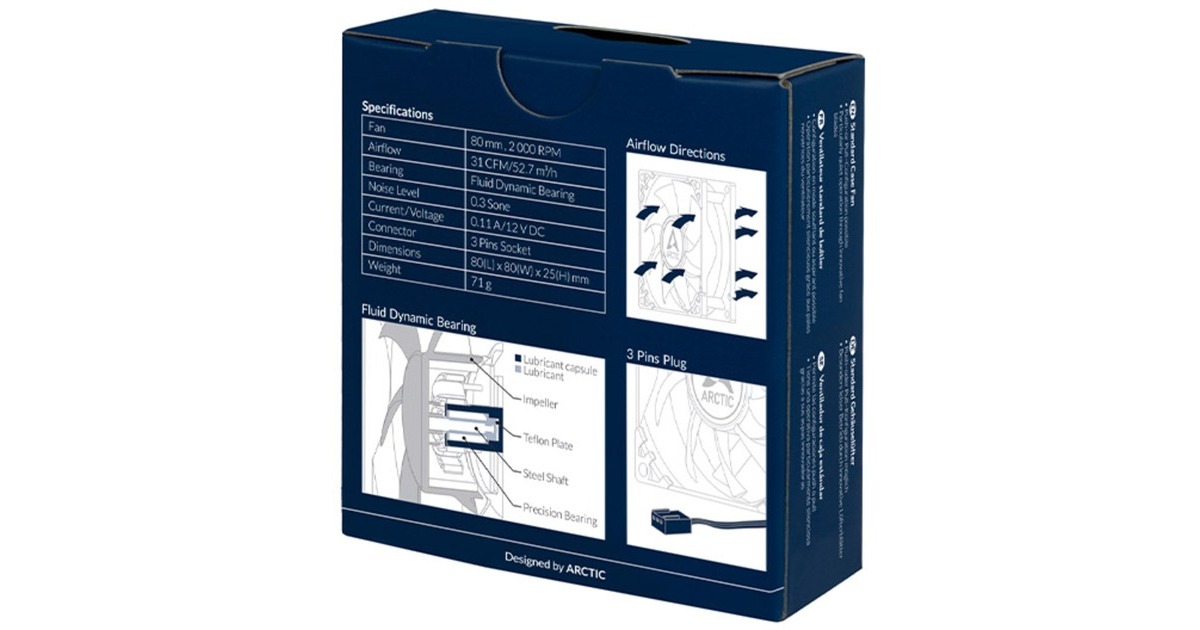 Der Arctic F8 80x80x25 ist ein 80-mm-Standard-Gehäuselüfter. Das hydrodynamische Gleitlager ist mit einer Ölkapsel ausgestattet, so dass ein Verlust des Schmiermittels vermieden wird. Aus diesem Grund ist dieses Lager so leise wie ein Gleitlager hat aber eine signifikant längere Betriebsdauer. Das innovative Design der Lüfterblätter verbessert den Luftfluss und die Möglichkeiten für eine deutlich effizientere Belüftung. Das Lüfterrad wurde mit dem Fokus auf einen minimalen Geräuschpegel entworfen und bietet einen verbesserten Luftfluss und Druck.Art.-Nr.: 1856937