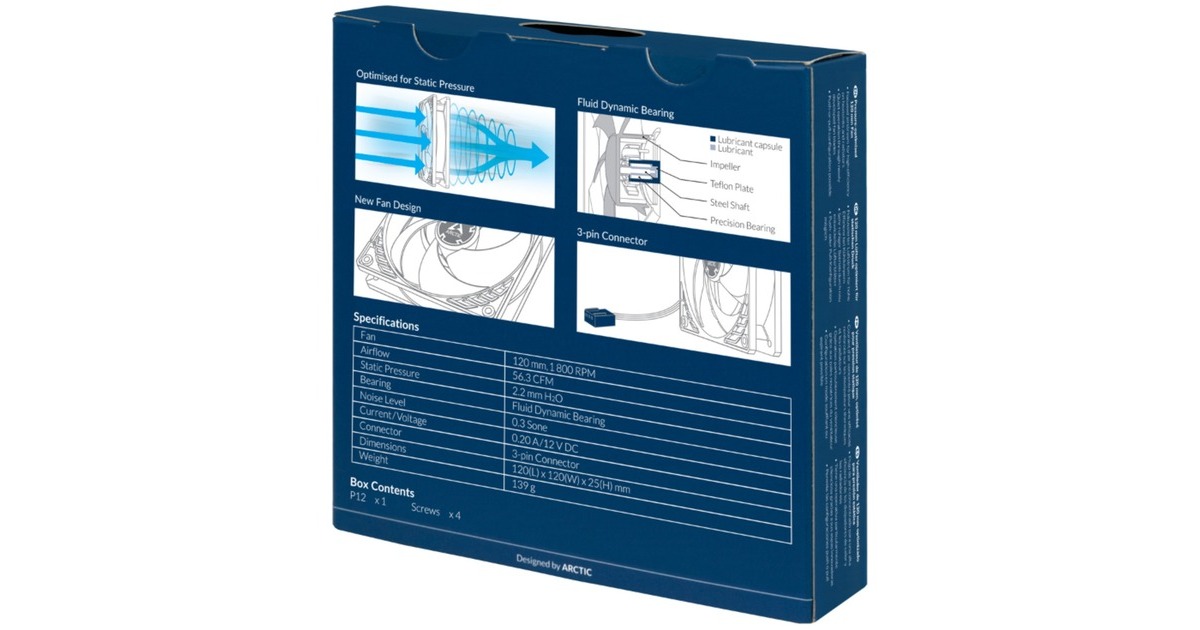 Bei der Entwicklung des Arctic P12 120x120x25 wurde besonders Wert auf einen fokussierten Luftstrom und einen hohen statischen Druck gelegt. Der Lüfter bietet damit eine äußerst effiziente Kühlung, auch bei erhöhtem Luftwiderstand. Daher ist der P12 besonders für eine Nutzung an Kühlkörpern, Radiatoren sowie auch bei Lochblenden und Filtern geeignet.Art.-Nr.: 1728684