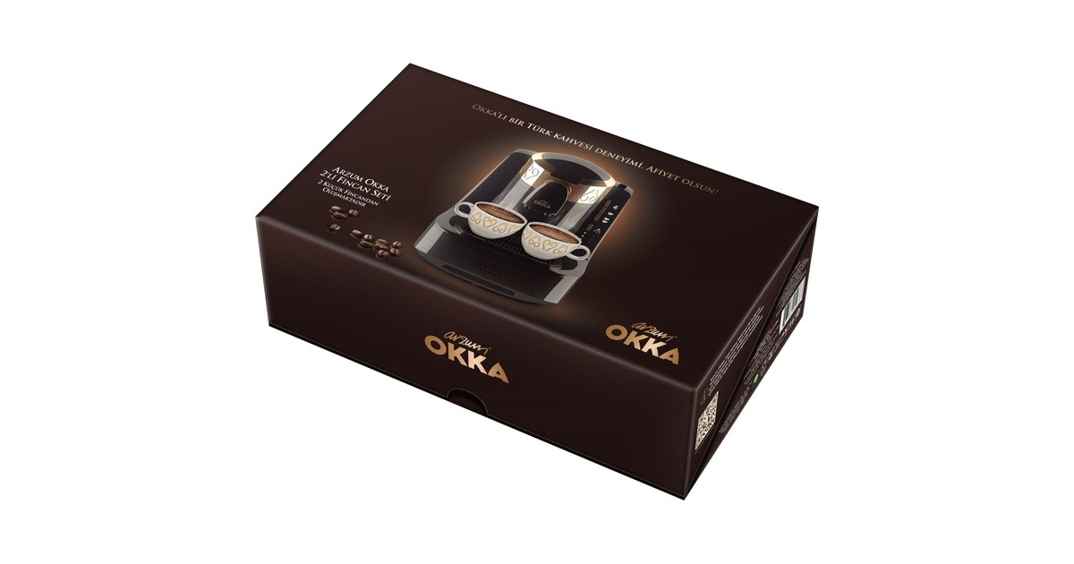 Das Arzum Okka Tassen-Set besteht aus zwei hochwertigen Porzellan Kaffeetassen mit Untertassen. Die Tassen sind spülmaschinengeeignet und passen durch die goldenen Verzierungen hervorragend zur Arzum Okka Mokkamaschinen Serie.Art.-Nr.: 1330303