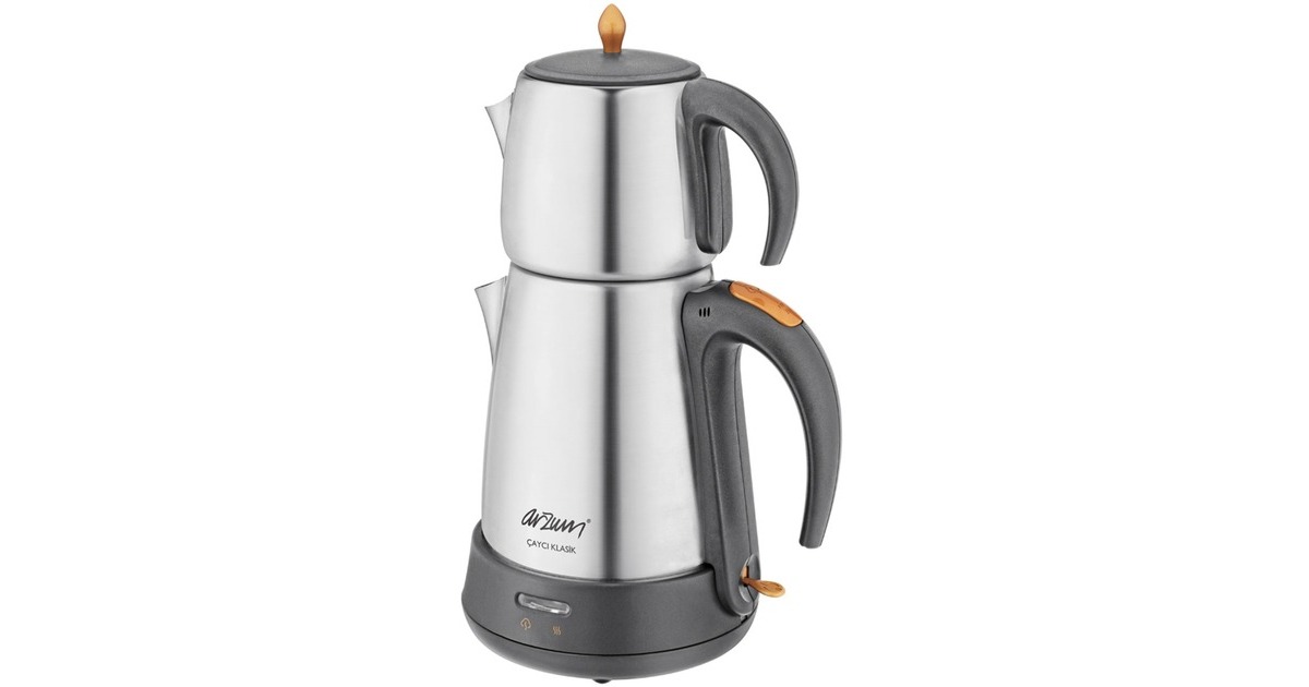 Mit dem elektrischen Teebereiter AR 3004 lässt sich ganz einfach Tee zubereiten. Das Doppelheizsystem bringt mit einer Leistung von 1650 Watt das Wasser zum Kochen und hält es mit 165 Watt warm. Der Edelstahl-Kessel fasst 1,8 Liter und kann, mit seinem speziellen Deckel, auch nur als Wasserkocher verwendet werden. Die Edelstahl-Teekanne hat ein Fassungsvermögen von 0,7 Litern. Die Verwendung ist kabellos und das verdeckte Heizelement erleichtert die Reinigung.