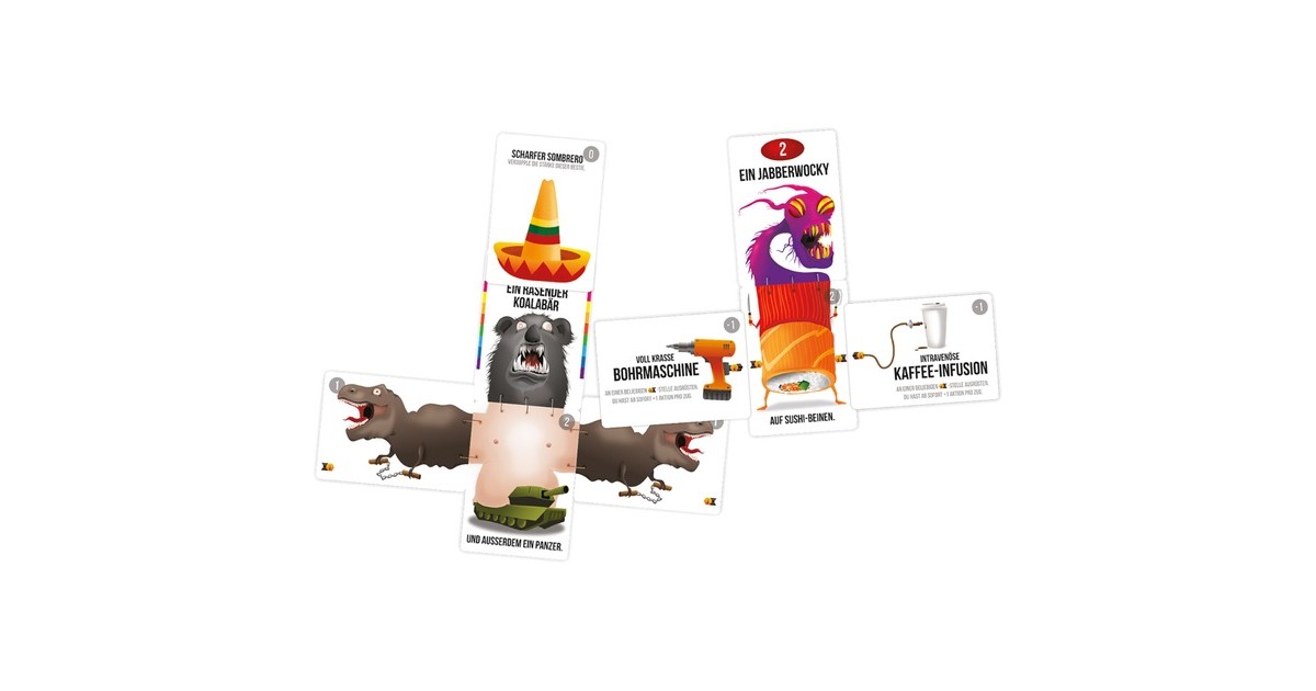 Bears vs. Babies ist ein Kartenspiel von den Machern von Exploding Kittens, bei dem man monströse Bären zusammenstellt (wie die Schachtel schon zeigt), um schreckliche Babys zu fressen. Die Monster verstärkt man beispielsweise mit einem Nunchuck schwingenden T-Rex, intravenösen Kaffee-Infusionen oder einem scharfen Sombrero. Zusätzlich heben wilde Provokationen, Zerstückelungen, verstecken Identitäten und sanft gesungene Schlaflieder das Spiel auf das nächste Level. Obwohl alle gegen die Armeen von Babys kämpfen, findet der wahre Kampf zwischen den Spielern statt. In Bears vs. Babies dreht sich alles darum, wundervolle Monster zu bauen, leckere Babies zu fressen und die Gegenspieler zu vernichten.Art.-Nr.: 1498515