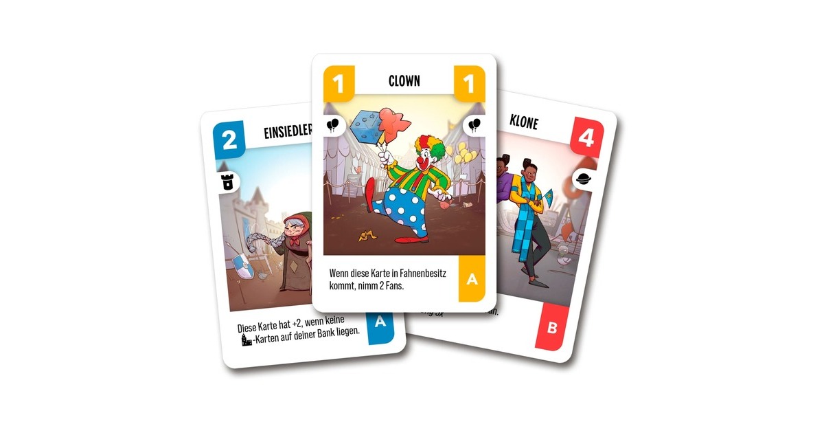 336 Karten, 4 Park-Playmats, 4 Fahnen-Plättchen, 40 Fan-Plättchen, 28 Trophäen-Plättchen, 3 Kartenspender, 2 Anleitungen |