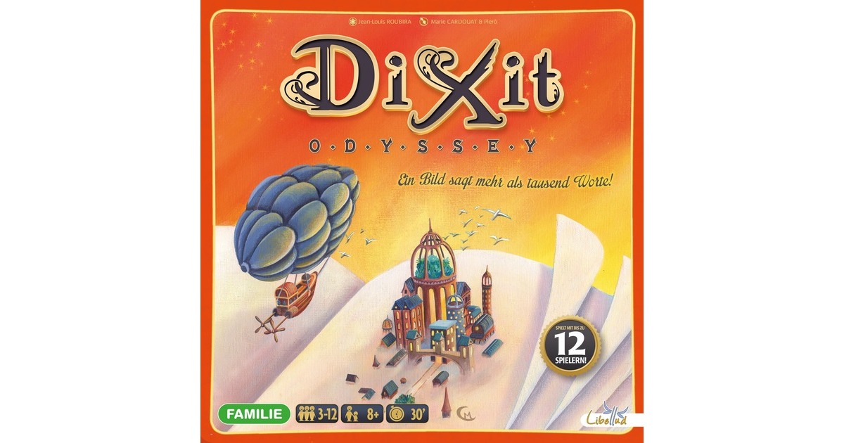 Dixit Odyssey ist eigenständig spielbar und mit den Vorgängern kombinierbar. Neben 84 neuen Karten gibt es neue Punktestandsanzeiger, Abstimmungstafeln und genügend Platz, um alle Karten von Dixit, Dixit 2 und Dixit 3 in einer Schachtel aufzubewahren.Art.-Nr.: 1257172
