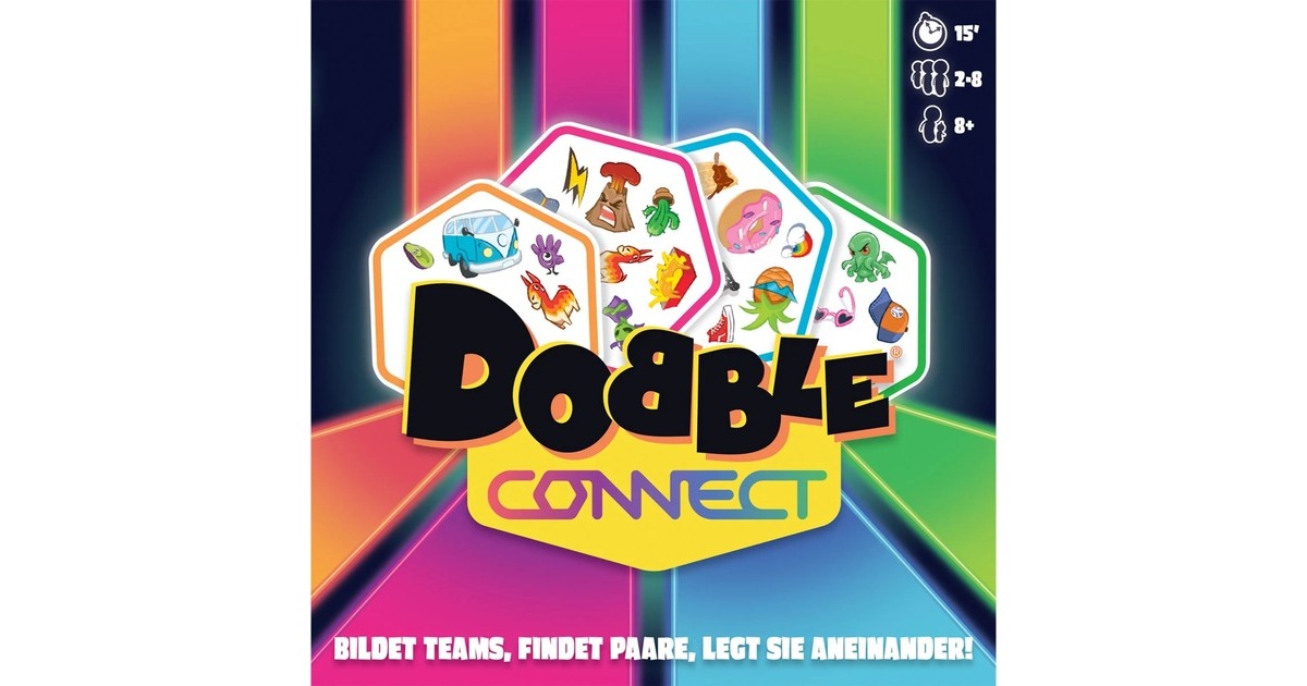 Schnappt euch eure Teamkollegen und macht euch bereit für "Dobble Connect", die spannende Teamversion des beliebten Reaktionsspiels! Hier vereint sich das bewährte Dobble-Spielgefühl mit der Dynamik und dem Nervenkitzel eines Teambewerbs. In "Dobble Connect" verfolgt ihr im Team das Ziel, vier Karten eurer Farbe zu einer Siegeslinie zu verknüpfen. Behaltet die Symbole im Auge, seid schnell im Erkennen des passenden Zeichens und legt eure Karte geschickt an. Jedes Match ist ein aufregendes Kopf-an-Kopf-Rennen, in dem jede Sekunde und jede Karte zählen! Das Spiel ist in voller Fahrt, wenn alle Teams gleichzeitig spielen und versuchen, den Gegner zu übertrumpfen. Wer zuerst vier pfeilschnelle Verbindungen schafft, jubelt über den Sieg! "Dobble Connect" bringt Freunde und Familie zusammen und sorgt für pulsierende Spannung auf dem Spieltisch. Ist eure Mannschaft schnell genug, um die Herausforderung zu meistern und als Meister der Symbole hervorzugehen? Stellt eure Reflexe und euer Teamwork auf die Probe - in "Dobble Connect", dem Kartenspiel, das einfache Regeln mit rasendem Spaß kombiniert!Art.-Nr.: 100045063