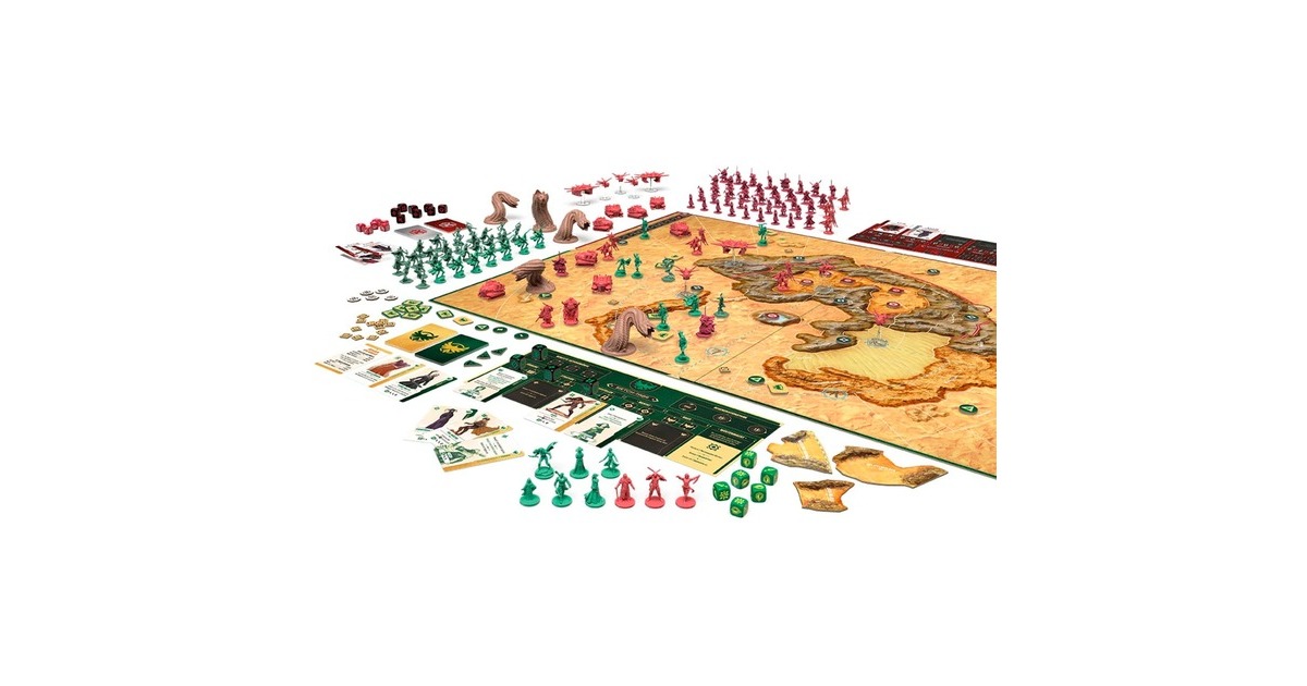 129 Miniaturen, 24 Würfel, 2 Spielplanteile, 7 Tableaus, 125 Karten, 86 Marker, 9 Kunststoffhalter, Anleitung |