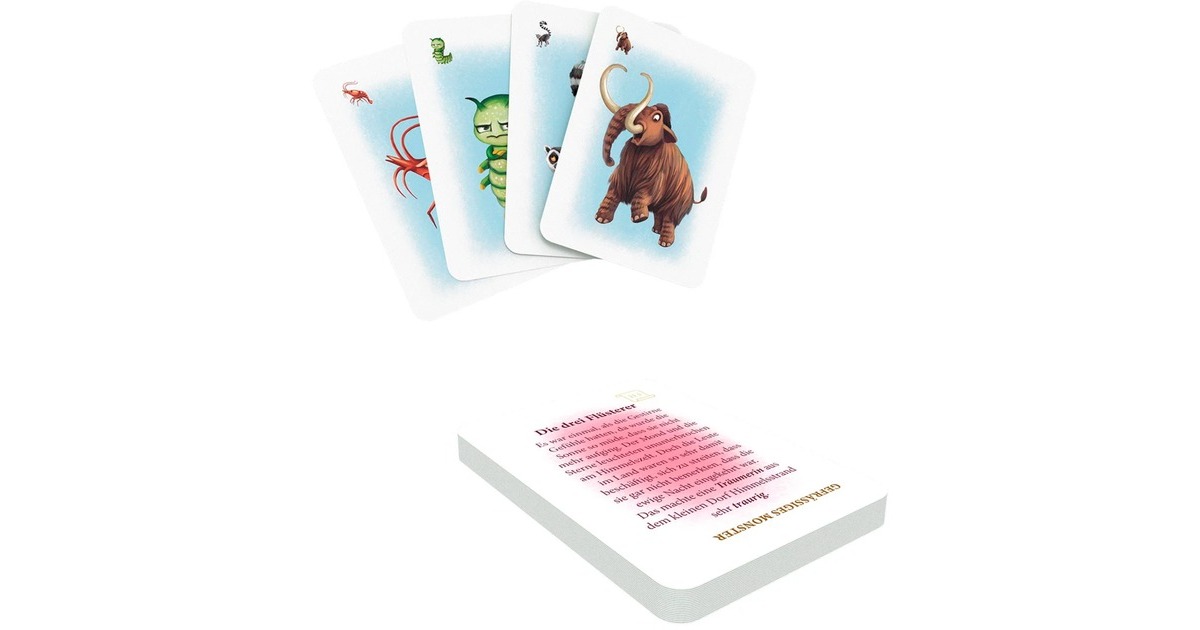 24 doppelseitige Geschichtenkarten, 7 leere Geschichtenkarten, 30 Tierkarten, Anleitung |