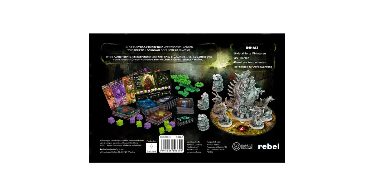 26 detaillierte Miniaturen, 100 Karten, 40 weitere Komponenten, Tiefziehteil zur Aufbewahrung |