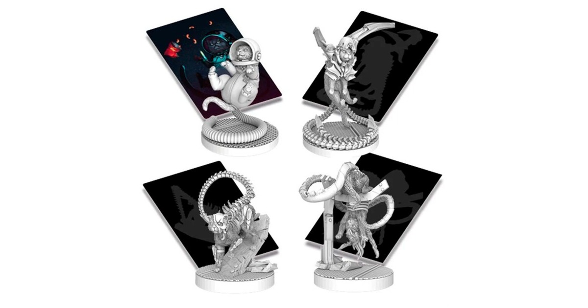 Dieses Figuren-Pack enthält vier Katzen-Astronautenfiguren mit passenden Kunstkarten. Das Set ist eine reine Sammler-Ergänzung zum Brettspiel "Nemesis". Art.-Nr.: 100045581