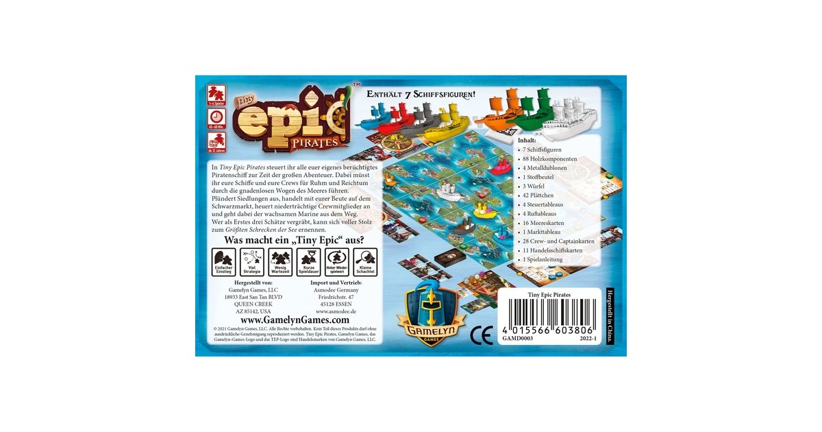 In Tiny Epic Pirates werden die Segel gesetzt: 1-4 Spieler übernehmen die Kontrolle über ein Piratenschiff - mit dem Ziel, möglichst viele Reichtümer anzuhäufen und am Ende der mächtigste Pirat zu werden. Das Spielgeschehen dreht sich um Plündern, Handeln, Besatzung aufstocken, Angreifen oder Suchen. Ahoi ihr Landratten - auf an Bord!Art.-Nr.: 1902448