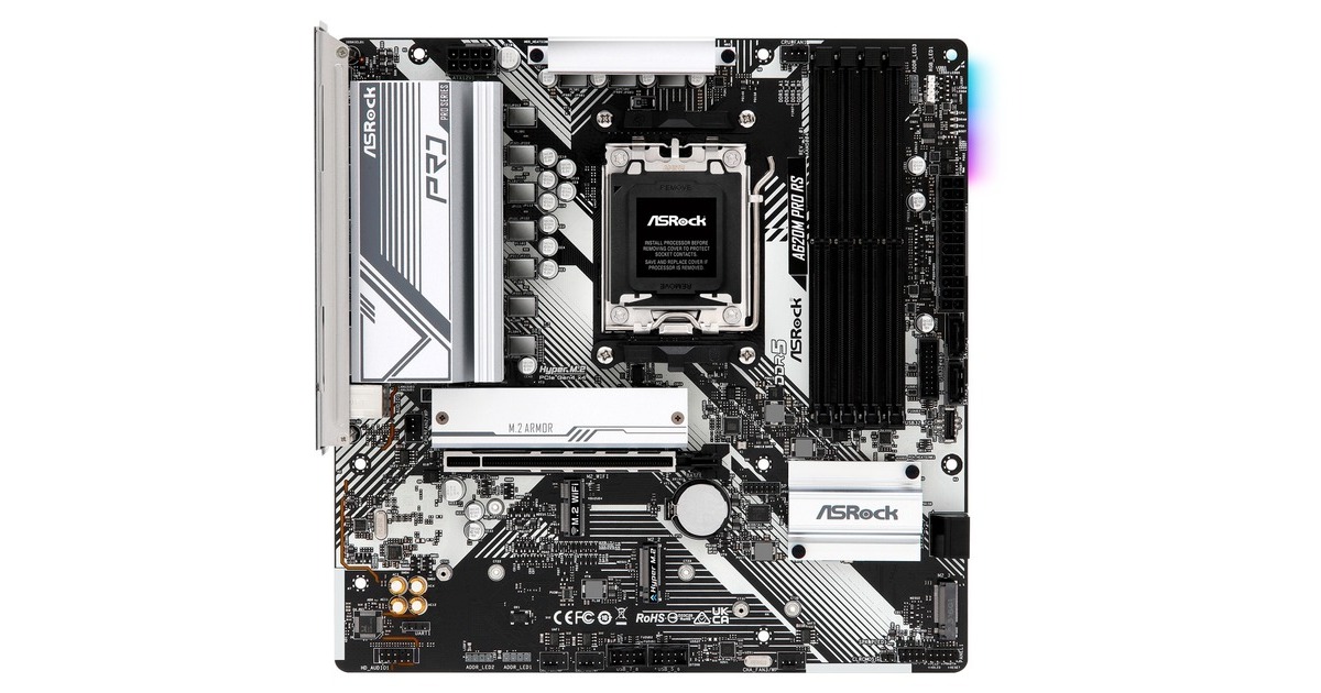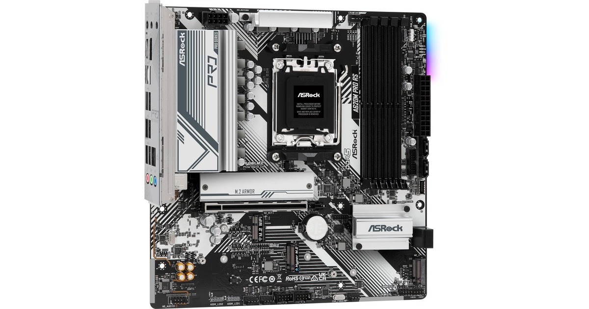 Das ASRock A620M Pro RS basiert auf dem AMD-A620-Chipsatz und unterstützt AMD-Prozessoren für den Sockel AM5. Es verfügt über vier DDR5-Slots für bis zu 192 GB Arbeitsspeicher. Zur weiteren Ausstattung des ASRock A620M Pro RS gehören ein PCIe-4.0-x16-Slot. Außerdem verfügt das ASRock A620M Pro RS über 8-Kanal-Sound, eine Gigabit-LAN-Schnittstelle, vier SATA3-Anschlüsse, drei M.2-Anschlüsse, WiFi 6E + Bluetooth 5.2 und eine Reihe an USB Schnittstellen.Art.-Nr.: 1911295