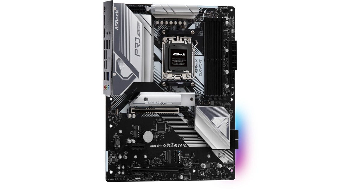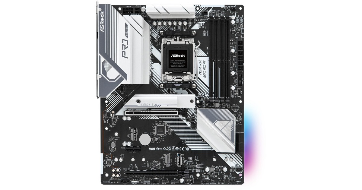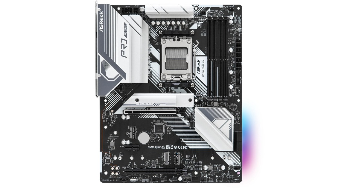 Das ASRock B650 PRO RS basiert auf dem AMD-B650-Chipsatz und unterstützt AMD-Prozessoren für den Sockel AM5. Es verfügt über vier DDR5-Slots für bis zu 192 GB Arbeitsspeicher. Zur weiteren Ausstattung des ASRock B650 PRO RS gehören ein PCIe-4.0-x16-Slot, ein PCIe-3.0-x16-Slot und ein PCIe-3.0-x1-Slot. Außerdem verfügt das ASRock B650 PRO RS über 8-Kanal-Sound, eine 2.5 Gigabit-LAN-Schnittstelle, vier SATA3-Anschlüsse, drei M.2-Anschlüsse und eine Reihe an USB Schnittstellen.Art.-Nr.: 1874523