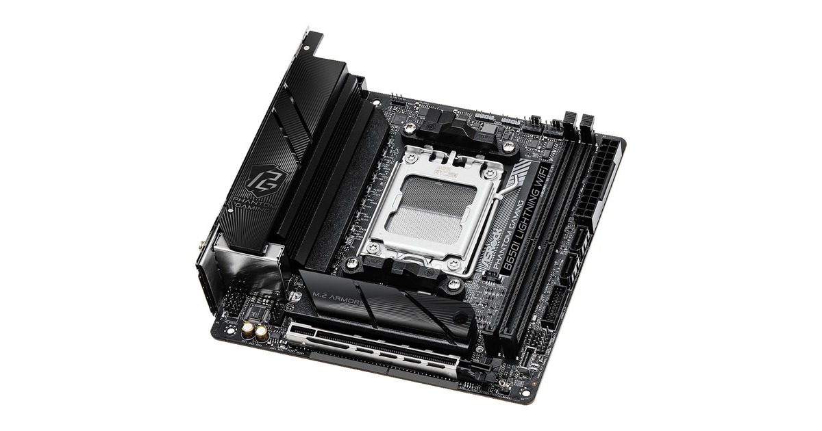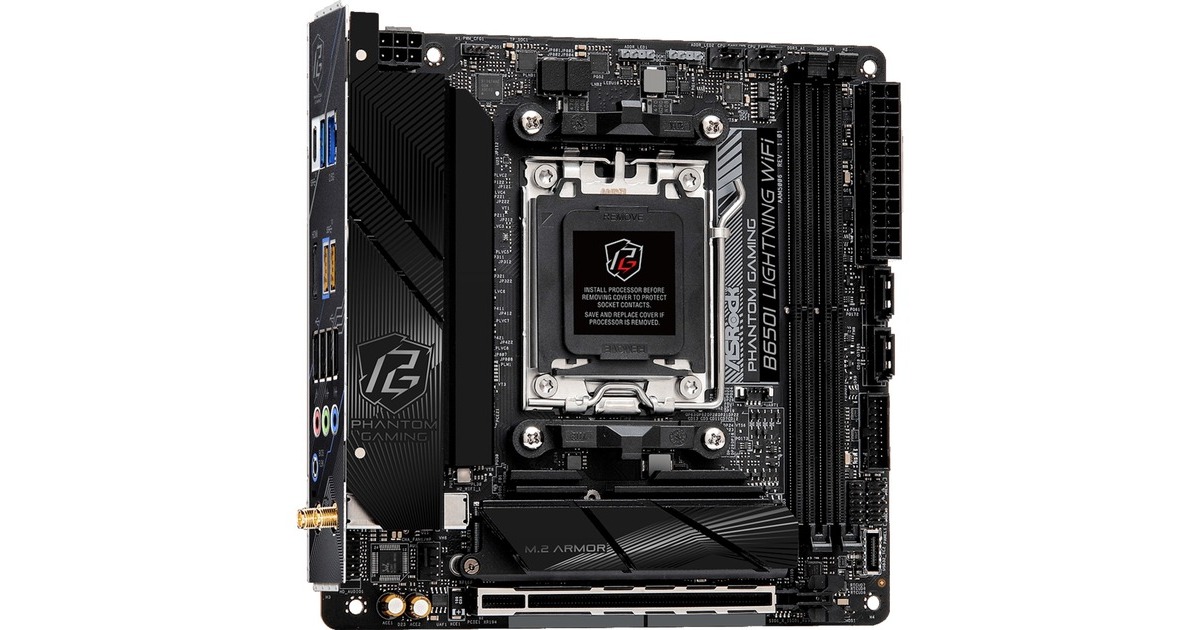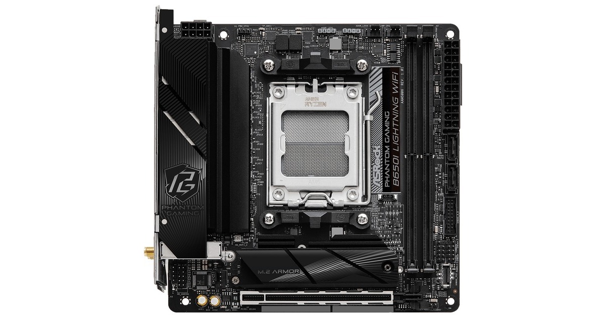 Das ASRock B650I Lightning WiFi basiert auf dem AMD-B650-Chipsatz und unterstützt AMD-Prozessoren für den Sockel AM5. Es verfügt über zwei DDR5-Slots für bis zu 96 Gigabyte Arbeitsspeicher. Zur weiteren Ausstattung des ASRock B650I Lightning WiFi gehört ein PCIe-4.0-x16-Slot. Außerdem verfügt das ASRock B650I Lightning WiFi über 8-Kanal-Sound, eine 2.5 Gigabit-LAN-Schnittstelle, vier SATA3-Anschlüsse, zwei M.2-Anschlüsse (1x Support für PCIe Gen5x4) und eine Reihe an USB Schnittstellen. Integriertes WLAN gehärt ebenfalls zur Ausstattung dieses Boards.