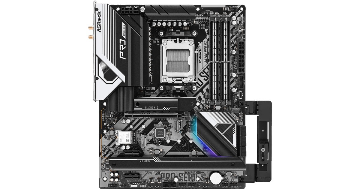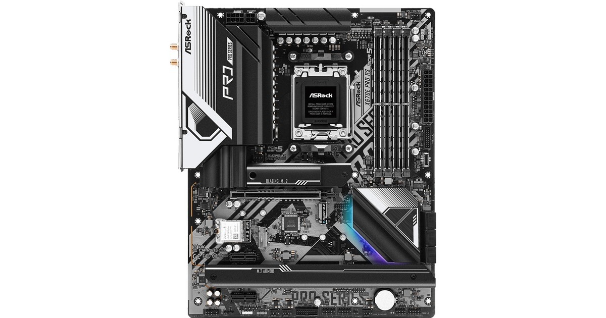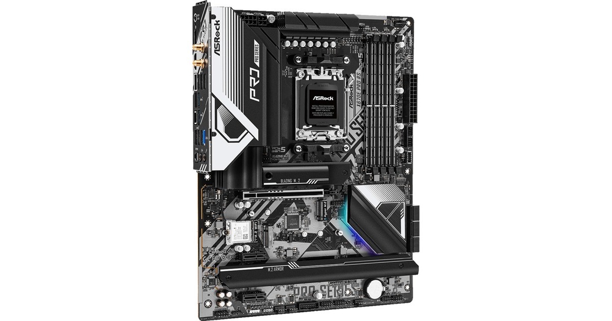 Das ASRock X670E Pro RS basiert auf dem AMD-X670-Chipsatz und unterstützt AMD-Prozessoren für den Sockel AM5. Es verfügt über vier DDR5-Slots für bis zu 128 GB Arbeitsspeicher. Zur weiteren Ausstattung des ASRock X670E Pro RS gehören ein PCIe-5.0-x16-Slot und zwei PCIe-4.0-x1-Slots. Außerdem verfügt das ASRock X670E Pro RS über 8-Kanal-Sound, eine 2.5 Gigabit-LAN-Schnittstelle, sechs SATA3-Anschlüsse, fünf M.2-Anschlüsse, WiFi 6E, Bluetooth und eine Reihe an USB Schnittstellen. Art.-Nr.: 1865008