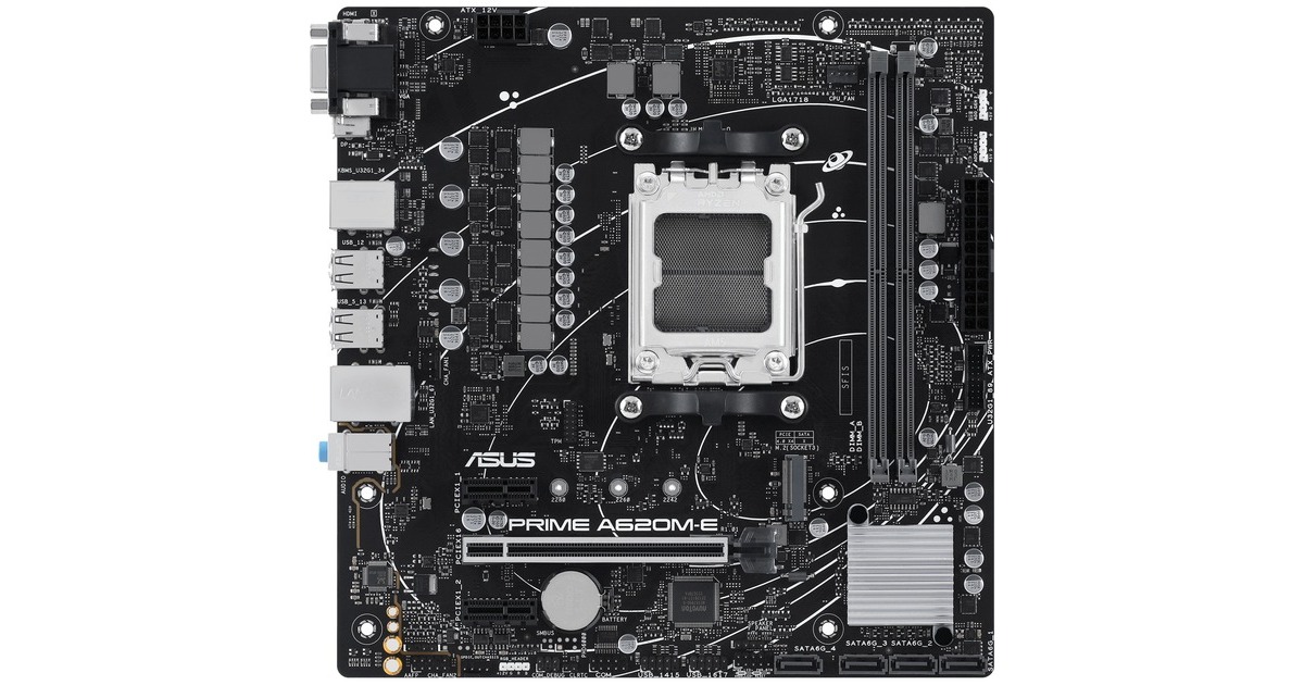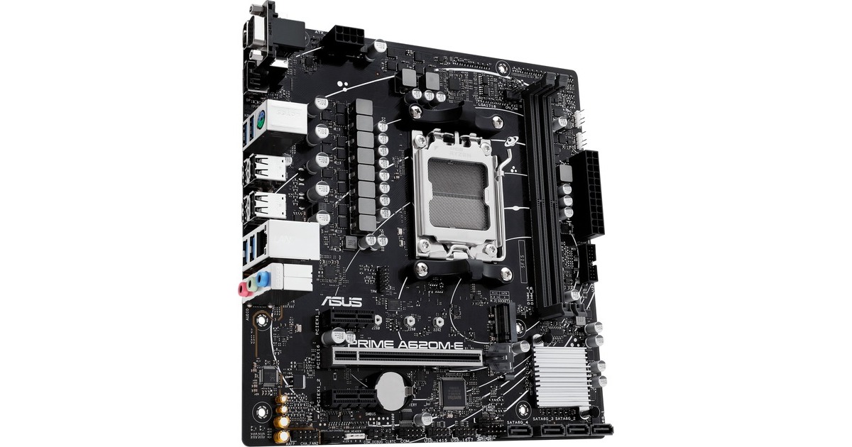 Das Mainboard ASUS PRIME A620M-E-CSM basiert auf dem AMD A620 Chipsatz und unterstützt AMD-Prozessoren für den Sockel AM5. Es verfügt über zwei DDR5-DIMM-Slots im Dual-Channel-Betrieb für bis zu 96 GB Arbeitsspeicher. Zur weiteren Ausstattung des ASUS PRIME A620M-E-CSM gehören ein PCIe-4.0-x16-Slot und zwei PCIe-3.0-x1-Slots. Außerdem verfügt das PRIME A620M-E-CSM über 8-Kanal-Sound, eine Gigabit-LAN-Schnittstelle, vier SATA3-Anschlüsse, einen M.2-Anschluss und eine Reihe an USB-Schnittstellen.Art.-Nr.: 100020032