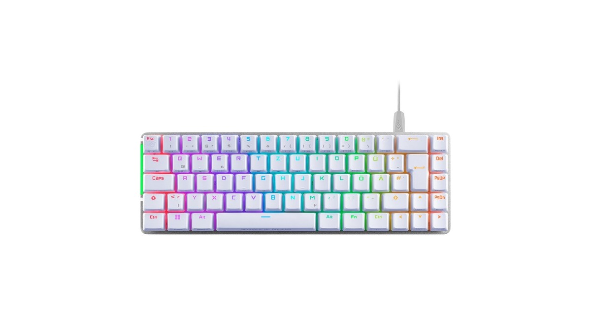 Interaktives Touchpanel | Double-Shot PBT-Tastenkappen | Schalldämpfender Schaum | ROG Stabilisatoren | Fn-Taste | 3 Neigungswinkeln | AURA Sync |
