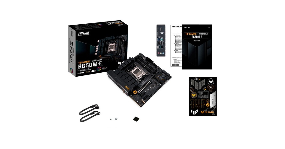 2x SATA-Kabel, I/O-Shield, Schraubenset für M.2-SSD, TUF Gaming-Sticker, Anleitung |