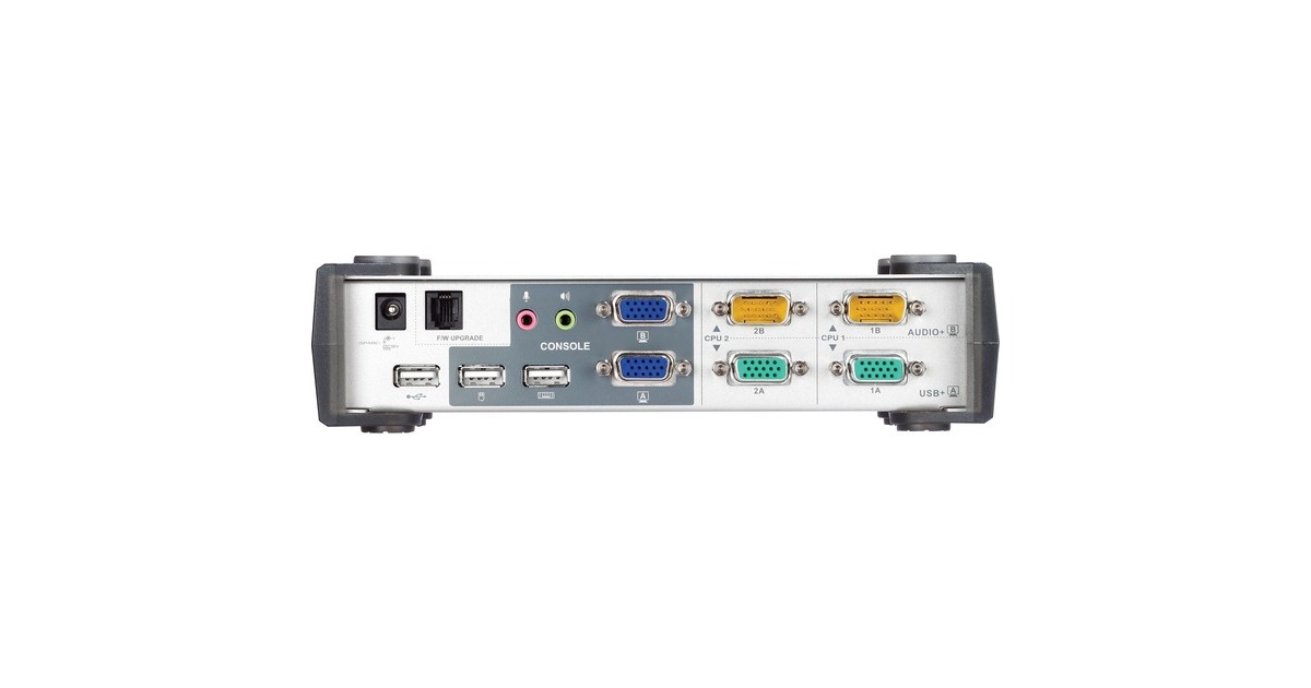 Der KVM-Switch CS1742C von ATEN ist die Lösung um zwei Dual-VGA-Computer mit nur einer Tastatur, Maus und Bildschirm zu steuern. Die Bedienung erfolgt sehr komfortabel per Hotkey an der Tastatur oder über Taster am Switch mit vier LEDs, die den aktuellen Status anzeigen. Die Computer werden jeweils mit einer USB-Buchse und zwei VGA-Buchsen sowie Audio-Anschlüssen mit dem CS1742C verbunden, der wiederrum zwei USB-Buchsen, und zwei VGA-Buchsen für die gemeinsame Tastatur, Maus und den Bildschirm bereitstellt. Zudem verfügt der CS1742C über einen USB-Hub mit zwei Ports.Art.-Nr.: 783122