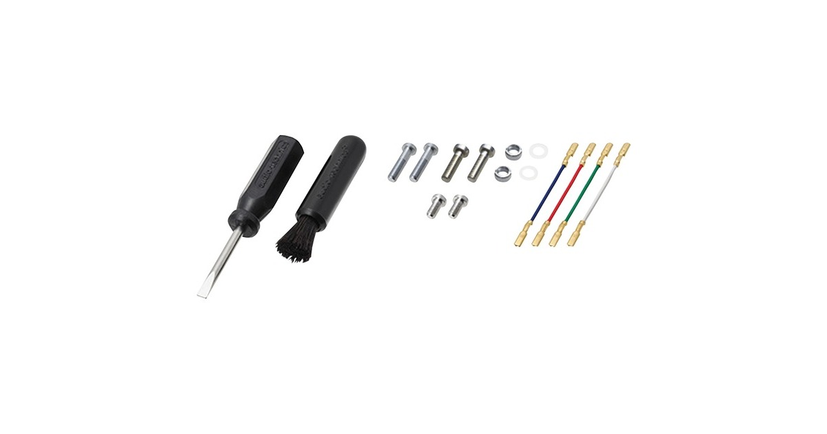 2 x 10 mm Montageschrauben, 2 x 5 mm Montageschrauben, 2 x Unterlegscheiben, 2 x Sechskantmutter, 1 x nichtmagnetischer Schraubendreher, 1 x Bürste |