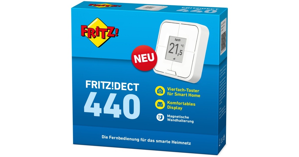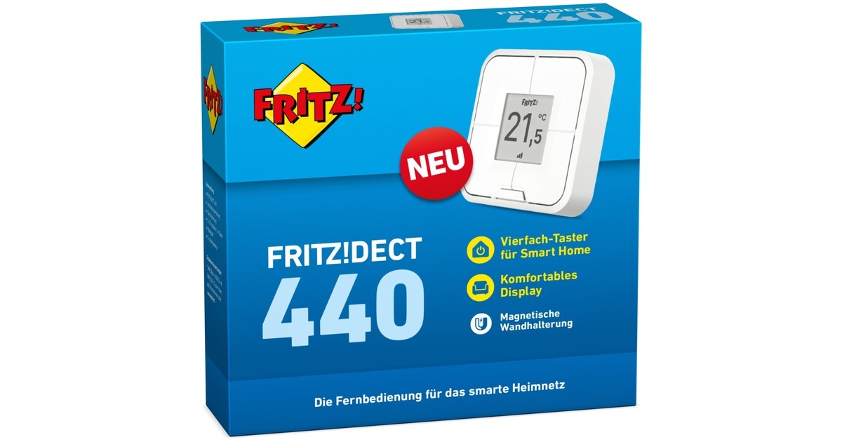 Der FRITZ!DECT 440 verbindet sich im Handumdrehen mit der FRITZ!Box – einfach mit einem Tastendruck. Der Vierfach-Taster ist für jede FRITZ!Box mit DECT-Basis geeignet und wird über sicheren DECT-ULE-Funk angebunden. Die vier Tasten können nach Wunsch belegt werden. So können bis zu 12 FRITZ!-Geräte oder Gerätegruppen festgelegt werden, die nach Wunsch über die vier Tasten geschaltet und gesteuert werden. So schalten Sie zum Beispiel die an den intelligenten Steckdosen FRITZ!DECT 200 und 210 angeschlossenen Geräte und regeln die Zimmertemperatur mit dem Heizkörperregler FRITZ!DECT 301. Durch dimmen des FRITZ!DECT 500 erzeugen Sie eine Wohlfühlatmosphäre und erschaffen mit einem Tastendruck eine andere Lichtstimmung. Mit der magnetischen Wandhalterung kann die smarte Fernbedienung flexibel positioniert werden und das E-Paper-Display informiert jederzeit über die Zimmertemperatur an der eingesetzten Stelle.Art.-Nr.: 1660213