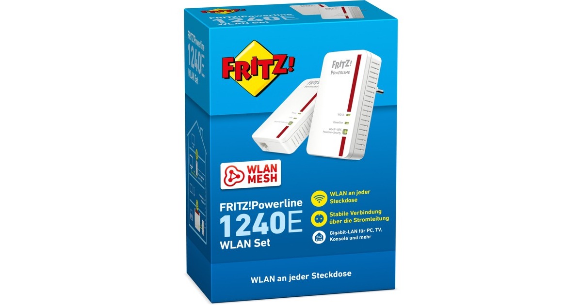 FRITZ!Powerline 1240E macht aus jeder Steckdose einen schnellen und sicheren Netzwerkanschluss. Mit Gigabit-Powerline von bis zu 1 MBit/s und 2x2-MIMO-Technologie werden deutlich robustere Verbindungen, größere Reichweiten und höhere Datendurchsätze als bisher erzielt. Zusätzlich stellt das Gerät einen WLAN N-Access-Point zur kabellosen Anbindung von Smartphone, Tablet und Notebook ans Heimnetz und ermöglicht Breitband-Anwendungen mit höchsten Ansprüchen auch im letzten Winkel von Haus und Wohnung.Art.-Nr.: 1240073