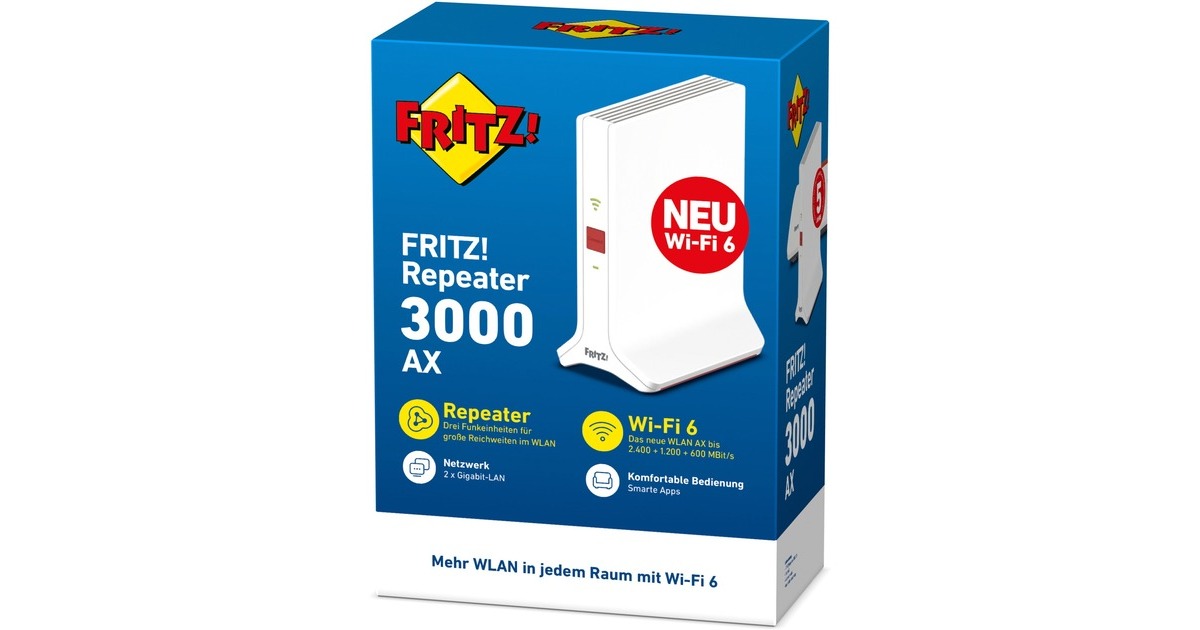 Mit drei Funkeinheiten, die in Summe einen Datendurchsatz von bis zu 4.200 MBit/s erzielen können, stellt der Repeater eine stabile Verbindung und ein Maximum an Bandbreite für alle verbundenen WLAN-Geräte zur Verfügung. Gleichzeitig erhöht der FRITZ!Repeater 3000 AX die Reichweite im WLAN und sorgt für eine perfekte Funkabdeckung bis in den letzten Winkel von Haus und Wohnung. Der neue Standard Wi-Fi 6 trägt der stetig wachsenden Zahl an WLAN-Geräten Rechnung. Von Smartphones über Tablets, PCs, 4K-Fernseher und Lautsprecher bis hin zur smarten Lampe werden immer mehr Geräte gleichzeitig im WLAN verwendet. Der FRITZ!Repeater 3000 AX funkt mit drei WLAN-Bändern, die auf intelligente Weise parallel genutzt werden. Dadurch wählt der FRITZ!Repeater 3000 AX immer den effizientesten Weg zum Router und den verbundenen WLAN-Geräten. Im Ergebnis erzielen alle Verbindungen im Heimnetz hohe Datenraten und selbst anspruchsvollste WLAN-Szenarien lassen sich so realisieren.Art.-Nr.: 1879086