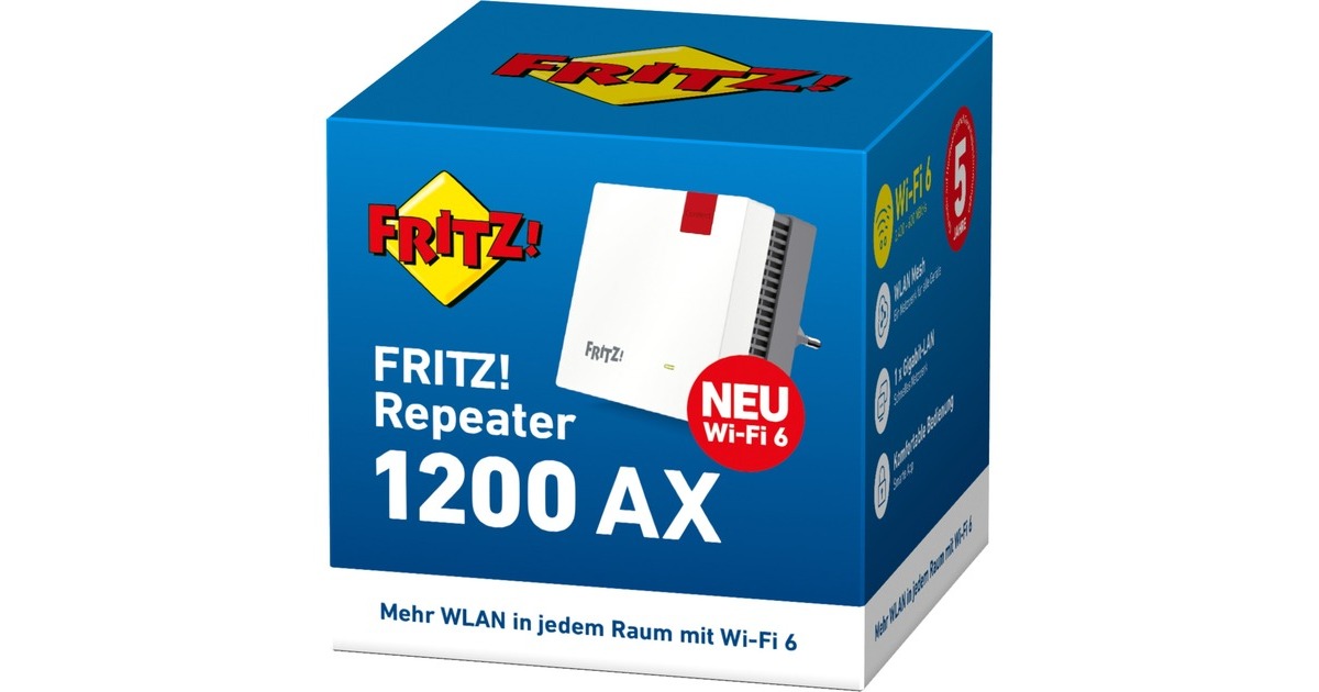 Der Wi-Fi 6 Standard trägt der stetig wachsenden Zahl an WLAN-Geräten Rechnung. Von Smartphones über Tablets, PCs, 4K-Fernseher und Lautsprecher bis hin zur smarten Lampe werden immer mehr Geräte gleichzeitig im WLAN verwendet. Dank Wi-Fi 6 mit zwei Funkeinheiten lassen sich Datenraten von bis zu 3.000 Mbit/s (2.400 MBit/s / 5GHz + 600 MBit/s / 2,4GHz) erzielen. Wi-Fi 6 sorgt auch für eine bessere Aufteilung der zur Verfügung stehenden Bandbreite. So profitieren auch ältere Smartphones oder Notebooks von der Leistung des FRITZ!Repeaters 1200 AX.