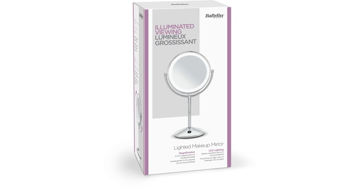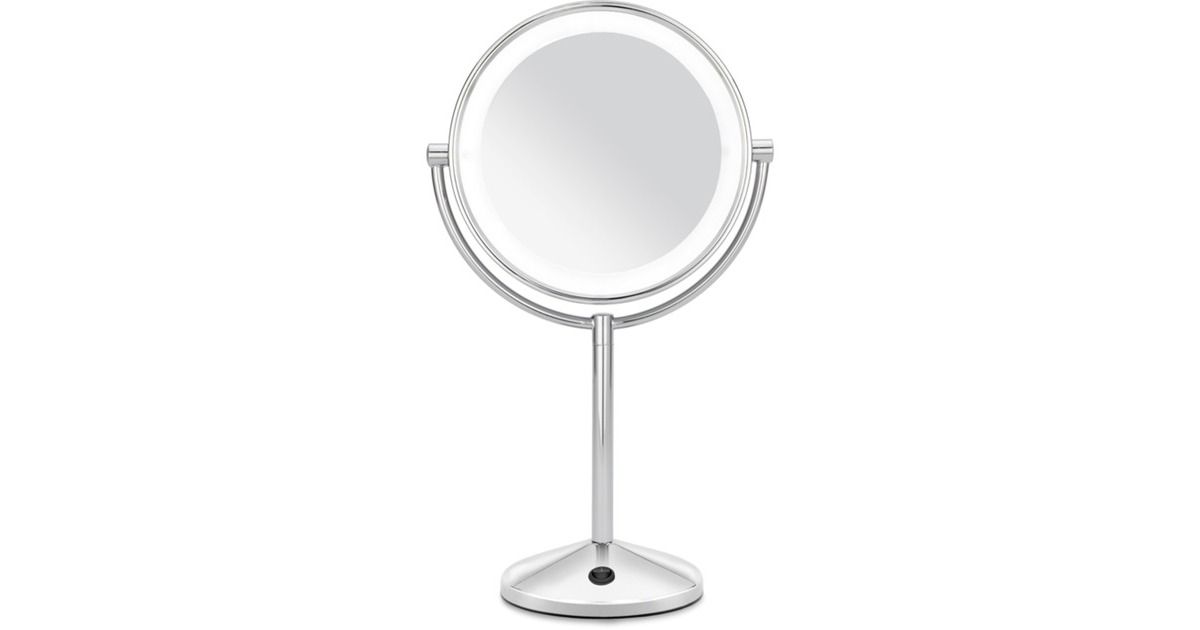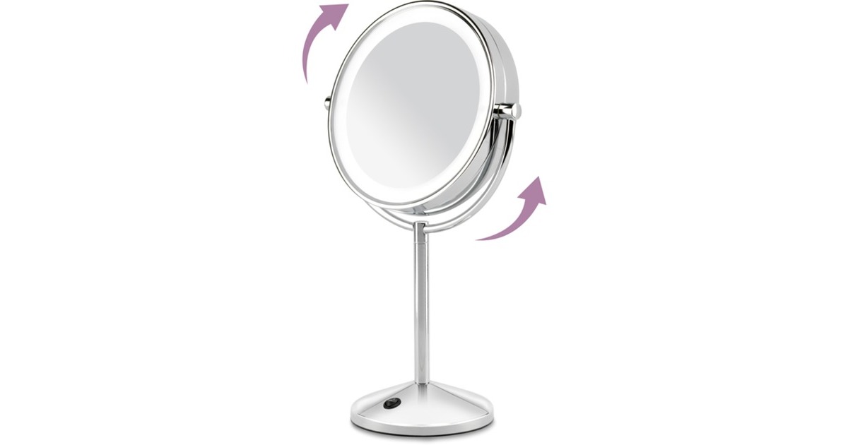 Der Kosmetikspiegel 9436E ist ein moderner LED Schminkspiegel in stylischem Chrom-Design mit angenehmer Beleuchtung am Spiegelrand. Er bietet zwei Spiegelflächen einen regulären Spiegel und einen mit 10-fach Vergrößerung für extra präzise Detailarbeit. Der Kosmetikspiegel ist batteriebetrieben und kann flexibel im ganzen Haus benutzt werden.