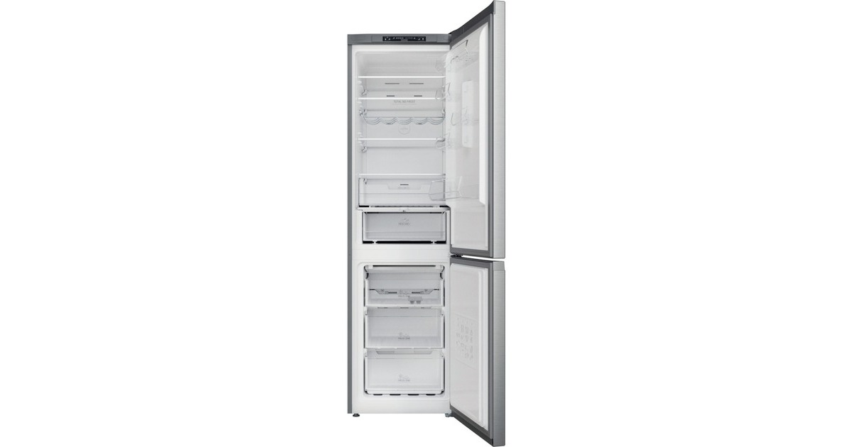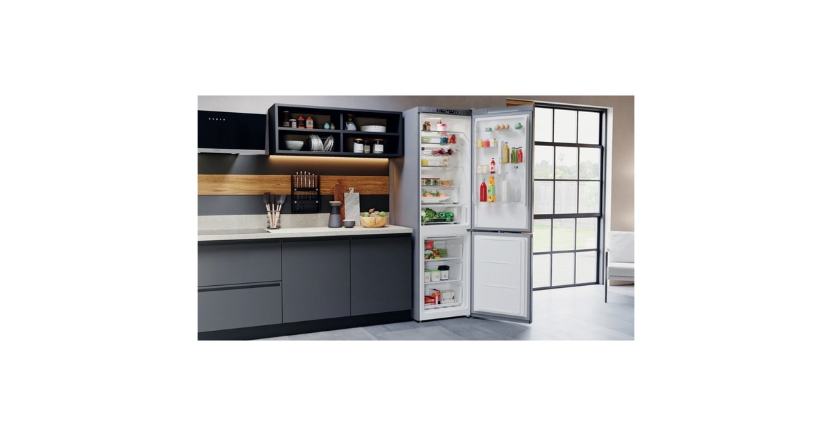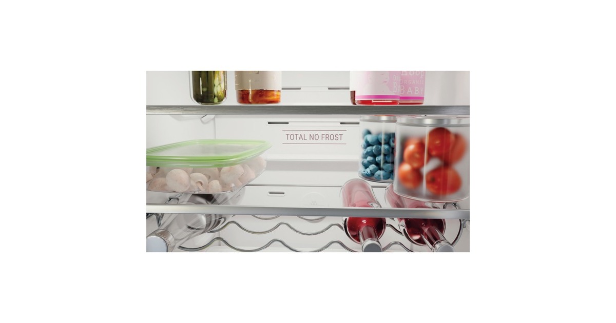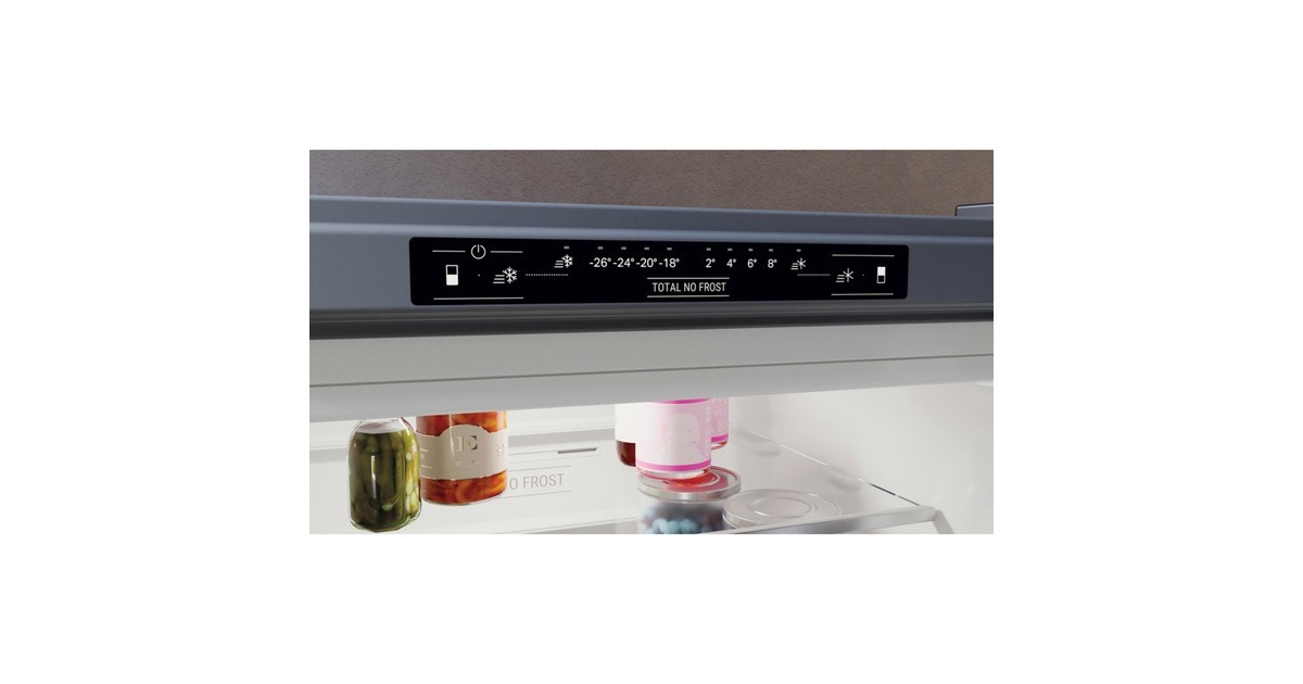 Die Kühl-/Gefrierkombination Bauknecht KGNF 210C2IN bietet einen Gesamtnutzinhalt von 367 Litern. Das 263 Liter umfassende Kühlteil stellt vier Abstellflächen aus Sicherheitsglas, davon drei auszieh- und drei höhenverstellbar, eine Fresh Zone+ mit Feuchtigkeitsregulierung für Obst und Gemüse und ein Fresh Zone 0° Fach für Fisch und Fleisch sowie fünf Türfächer, davon ebenfalls drei höhenverstellbar, zur Verfügung. Das Gefrierteil mit 104 Litern Nutzinhalt ist mit drei kippsicheren Gefriergutschubladen ausgestattet und muss dank Total NoFrost nie wieder abgetaut werden. Active Fresh und Active Freeze sorgen nach dem Öffnen der Tür für eine schnellere Temperaturwiederherstellung, da Sensoren die Temperatur im Kühl- bzw. gefrierraum permanent überprüfen. Die Temperaturregelung erfolgt elektronisch über das innenliegende LED-Display und der Active-Inverter-Kompressor sorgt für eine schnellere Temperaturwiederherstellung, minimiert Energieverbrauch und Betriebsgeräusche. Mit einem Stromverbrauch von 162 kWh im Jahr ist die KGNF 210C2IN in die Energieeffizienzklasse C eingestuft.Art.-Nr.: 1865787