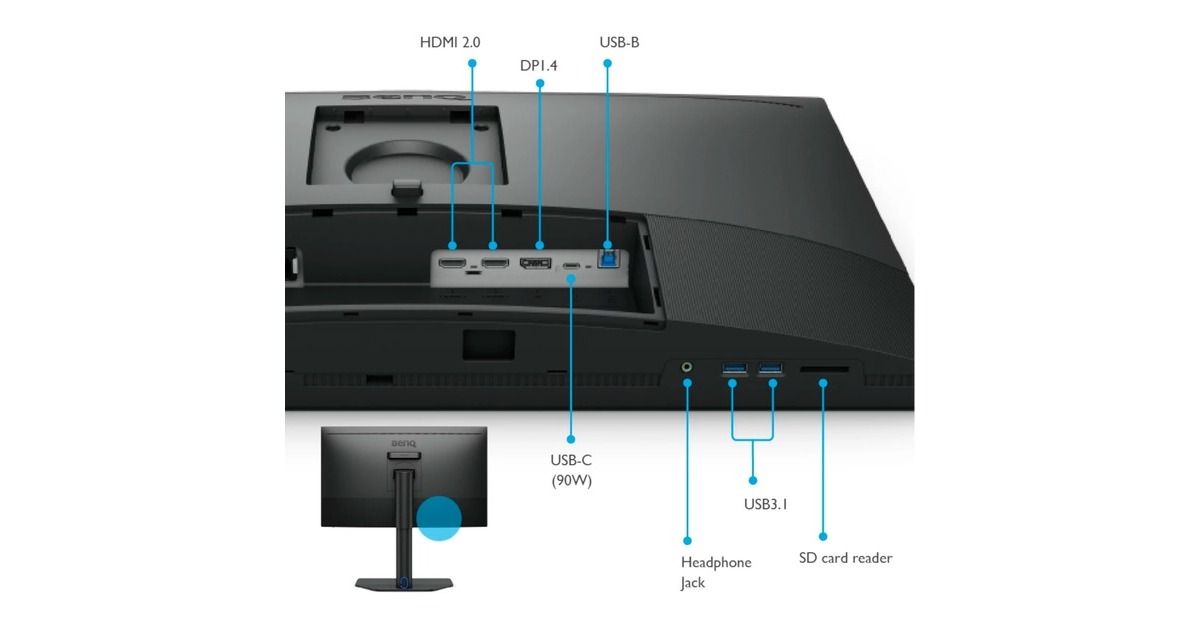 Antireflexionsbeschichtung mit TÜV-Zertifizierung, Wireless Hotkey Puck, USB Typ-C mit 90 Watt Power Delivery, calman zertifiziert, Pantone zertifiziert, Pantone SkinTone Validated, AQCOLOR, Paper Color Sync |