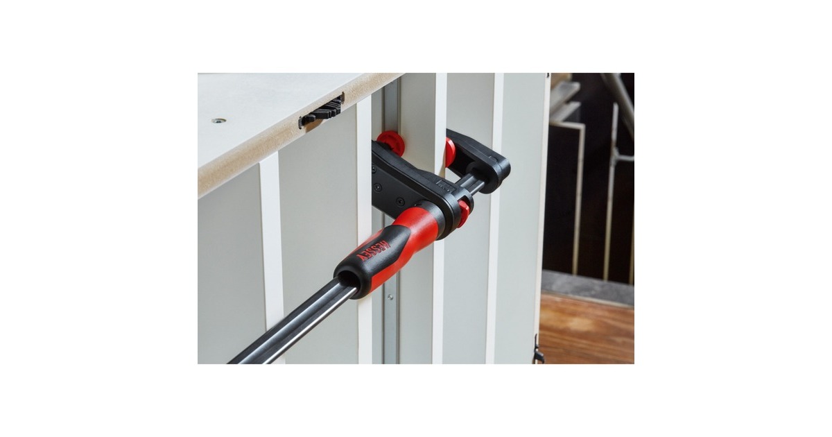 Die BESSEY Getriebezwinge GearKlamp GK30 erreicht eine Spannkraft von bis zu 2.000 N und ist enorm flexibel und selbst bei engsten Platzverhältnissen einsetzbar, die für herkömmliche Schraubzwingen nicht oder nur schwer zugänglich sind. Der Schraubgriff ist um die Schiene herum positioniert, so ist er z.B. in schmalen Ausschnitten nicht im Weg. Durch das Kunststoffgehäuse des Gleitbügels wird die Antriebsmechanik dabei vor Staub oder Spänen geschützt, und das Kreuzprisma am Oberteil sorgt für sicheren Halt auch von runden, spitzen oder kantigen Teilen. Die Getriebe-Schraubzwinge GearKlamp GK30 bietet dem Benutzer auch ein Plus an Komfort. Den hochwertige 2-Komponenten-Kunststoffgriff ermöglicht eine sichere Handhabung, die Schnellverschiebe-Taste dient zum schnellen Verstellen des Gleitbügels, und die schwenkbare Druckplatte ermöglicht das perfekte Anpassen der Zwinge an das Werkstück.Art.-Nr.: 1593247