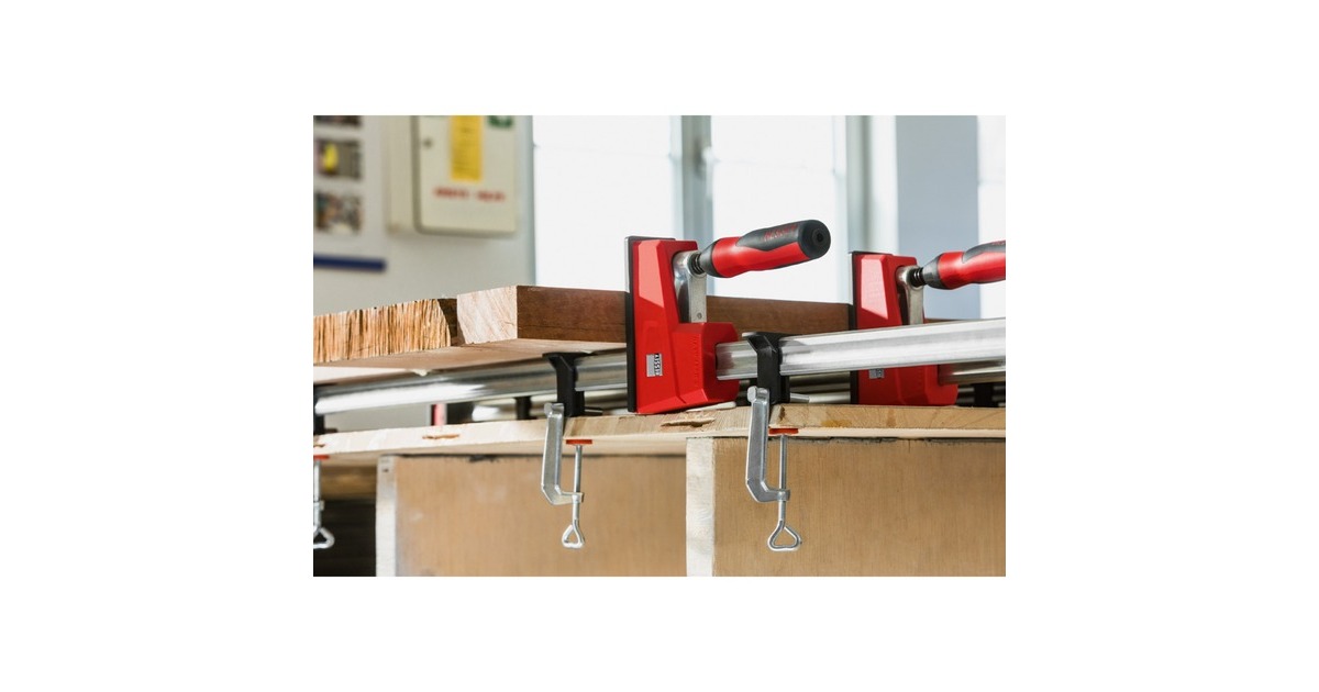Die BESSEY Korpuszwinge REVO KRE100-2K erreicht eine Spannkraft von bis zu 8.000 N und kann auch Werkstücke mit empfindlichen Oberflächen exakt parallel zueinander spannen und spreizen, auch hinter und seitlich der Schiene. Sogar Ecken und abgesetzte Kanten oder spitze und runde Oberflächen können perfekt justiert werden. Die sehr großen Spannflächen sind rechtwinklig zur Schiene angebracht, und die drei abnehmbaren Schutzkappen sind leimabweisend und beständig gegen Lacke und Fettlösemittel. Die Werkstückauflagen vermeiden dabei den Kontakt des Werkstücks zur Schiene. Das metallverstärkte Kunststoffgehäuse und der optimierte Gleitbügel mit doppelter Rutschsicherung hält die Zwinge zuverlässig auf der eingestellten Spannkraft und verhindert in ungespanntem Zustand ein unbeabsichtigtes Abrutschen des Gleitbügels. Mit dem ergonomisch geformten 2-Komponenten-Kunststoffgriff mit Innensechskant lässt sich die Spannkraft mit einem max. Drehmoment von 17Nm sehr komfortabel aufbringen. Die Korpuszwinge REVO KRE100-2K bietet dank ausgeklügelten optional erhältlichen Zubehörs enorm viele flexible Einsatzmöglichkeiten.Art.-Nr.: 1593484