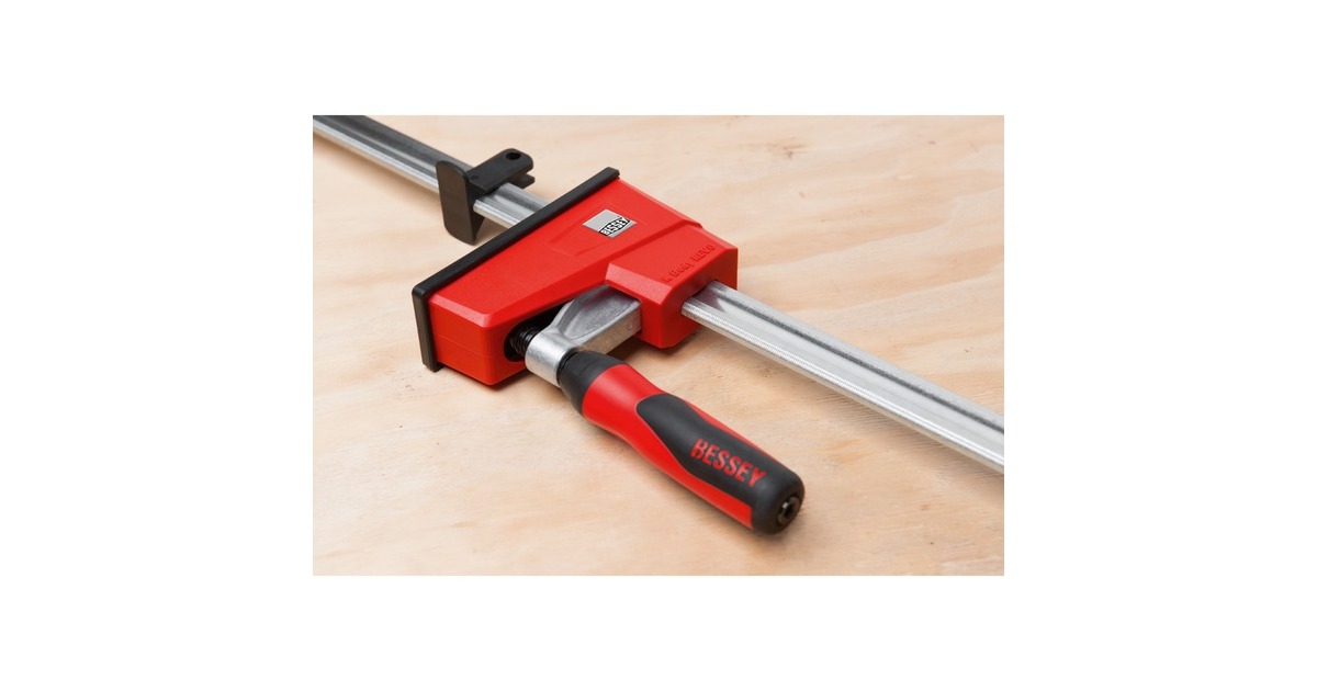 Die BESSEY Korpuszwinge REVO KRE150-2K erreicht eine Spannkraft von bis zu 8.000 N und kann auch Werkstücke mit empfindlichen Oberflächen exakt parallel zueinander spannen und spreizen, auch hinter und seitlich der Schiene. Sogar Ecken und abgesetzte Kanten oder spitze und runde Oberflächen können perfekt justiert werden. Die sehr großen Spannflächen sind rechtwinklig zur Schiene angebracht, und die drei abnehmbaren Schutzkappen sind leimabweisend und beständig gegen Lacke und Fettlösemittel. Die Werkstückauflagen vermeiden dabei den Kontakt des Werkstücks zur Schiene. Das metallverstärkte Kunststoffgehäuse und der optimierte Gleitbügel mit doppelter Rutschsicherung hält die Zwinge zuverlässig auf der eingestellten Spannkraft und verhindert in ungespanntem Zustand ein unbeabsichtigtes Abrutschen des Gleitbügels. Mit dem ergonomisch geformten 2-Komponenten-Kunststoffgriff mit Innensechskant lässt sich die Spannkraft mit einem max. Drehmoment von 17Nm sehr komfortabel aufbringen. Die Korpuszwinge REVO KRE150-2K bietet dank ausgeklügelten optional erhältlichen Zubehörs enorm viele flexible Einsatzmöglichkeiten.Art.-Nr.: 1859352
