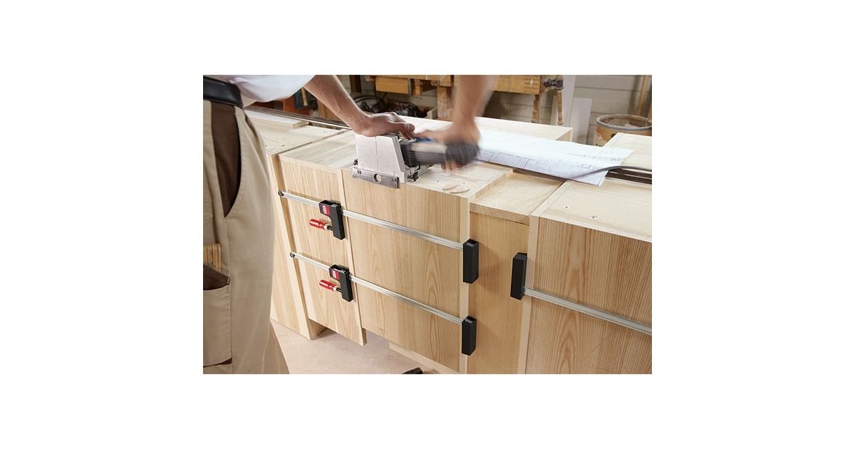 Die leichte BESSEY Korpuszwinge UniKlamp UK80 erreicht eine Spannkraft von bis zu 1.500 N und kann auch Werkstücke mit empfindlichen Oberflächen exakt parallel zueinander spannen und spreizen, auch hinter und seitlich der Schiene. Sogar Ecken und abgesetzte Kanten oder spitze und runde Oberflächen können perfekt justiert werden. Die großen Spannflächen aus schlag- und bruchfestem, verstärktem Polyamid sind rechtwinklig zur Schiene angebracht und laufen exakt parallel. Die hochwertige Hohlprofilschiene ist speziell für Zwingen optimiert, das Profil wirkt als zuverlässige Verstärkung gegen Torsionskräfte, und die Riffelung verhindert zusätzlich das Abrutschen der Zwinge. Die Endsicherung aus schlagzähem Polyamid dient zur parallelen Abstützung der Zwinge und ist werkzeuglos abnehmbar, speziell zum schnellen Umstecken des Unterteils zur Spreizfunktion. Die Korpuszwinge UniKlamp UK80 ist leicht, handlich und universell einsetzbar.Art.-Nr.: 1806382