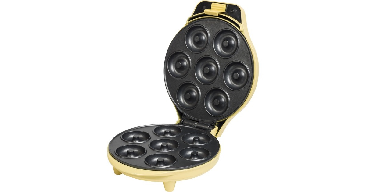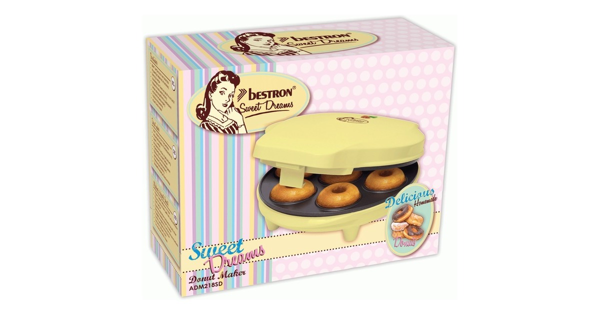 Der Donutmaker von Bestron backt im Handumdrehen sieben leckere Donuts. Das Gerät ist mit einer Leistung von 700 Watt und hochwertigen, antihaftbeschichteten Backplatten ausgestattet. Die Bedienung ist ein Kinderspiel, da die Temperatur automatisch geregelt wird. Art.-Nr.: 1432162