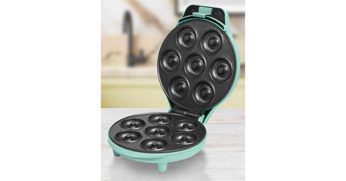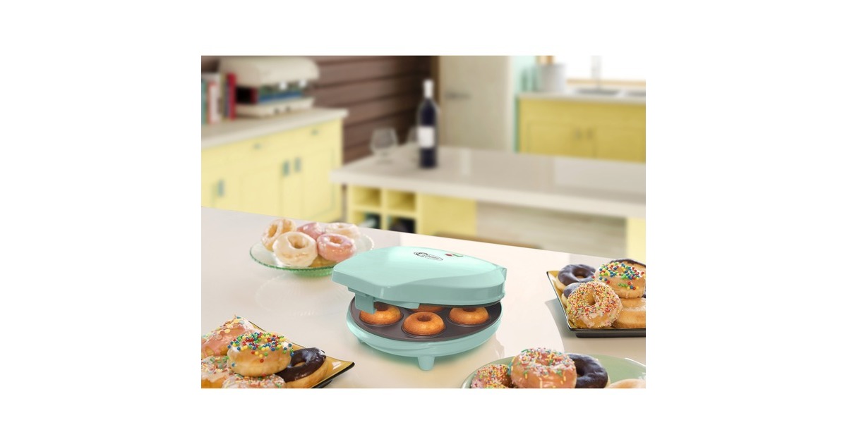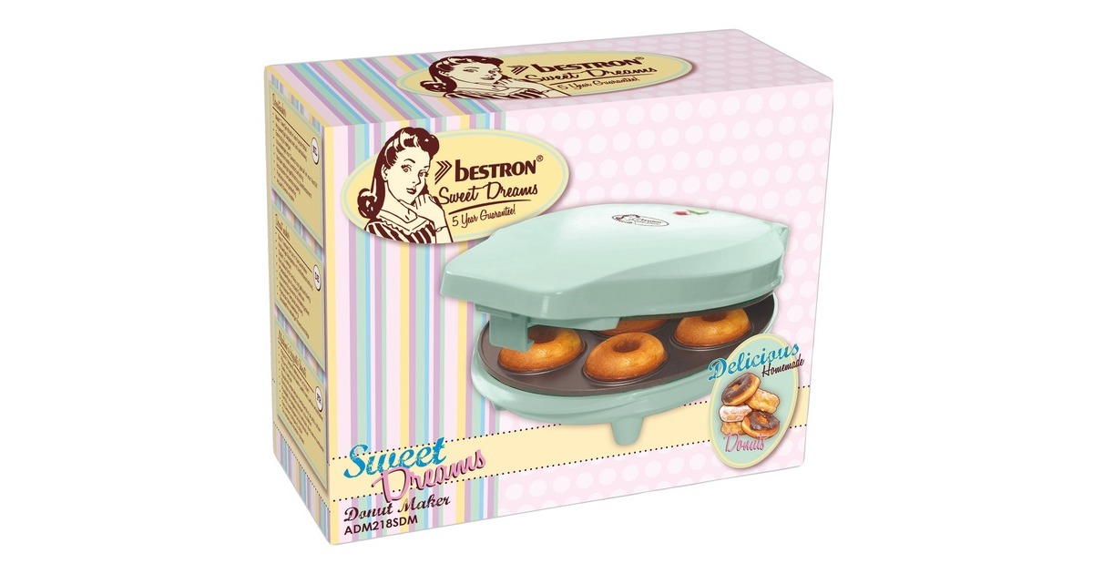 Der Donutmaker ADM218SDM von Bestron backt 7 leckere Donuts im Handumdrehen. Die Kontrollleuchte informiert darüber ob das Gerät angeschlossen und ob es betriebsbereit ist. Das Gehäuse in frischem Mint besteht aus hitzbeständigem Kunststoff. Der Donutmaker ist innerhalb weniger Minuten einsatzbereit und die Bedienung ist dank der automatischen Temperaturregelung und der Backampel ein Kinderspiel. Die Antihaftbeschichtung sorgt für leichtes Entnehmen der Donuts sowie für eine einfache Reinigung.