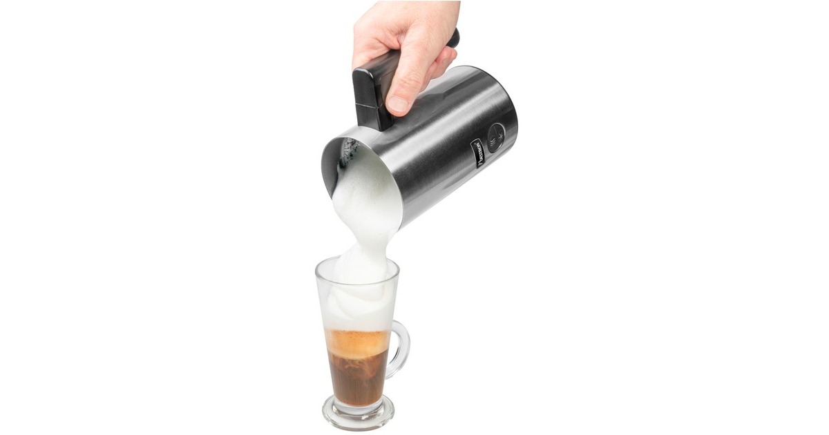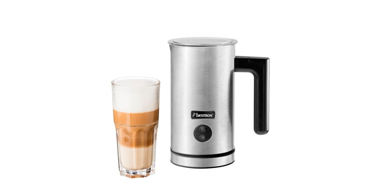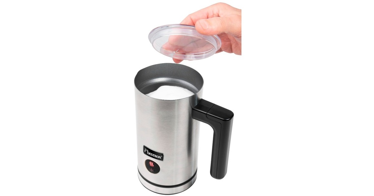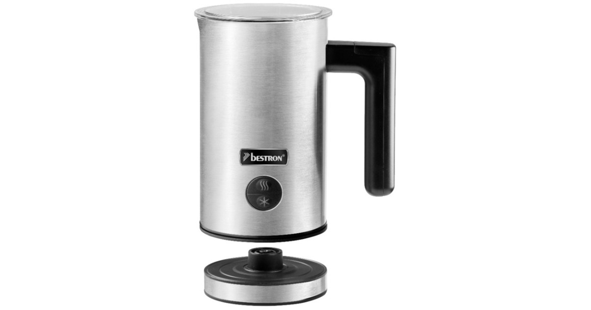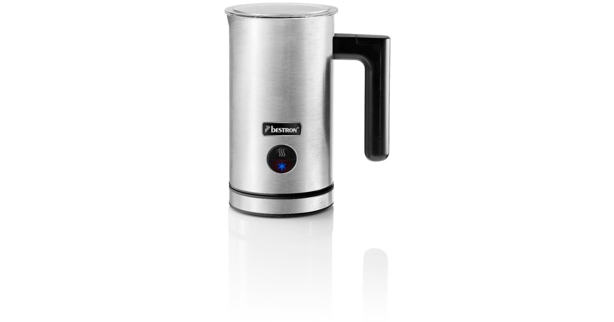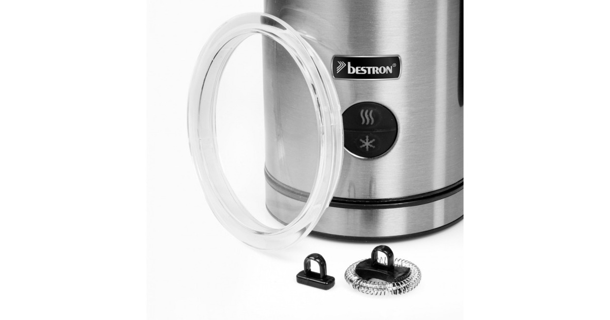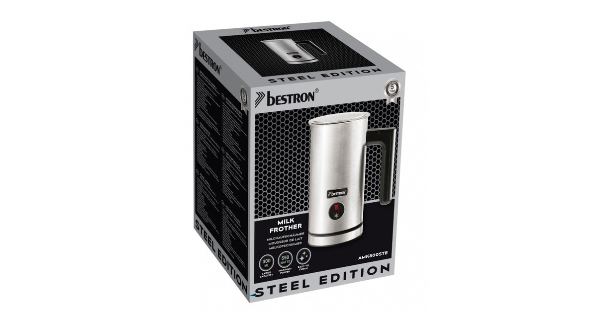 Der AMK800STE Milchaufschäumer aus der Steel Edition von Bestron bereitet innerhalb von 2 Minuten Milchschaum für einen leckeren Cappuccino, Café Latte oder Macchiato zu. Mit diesem Milchaufschäumer können 150 ml Milch aufgeschäumt und 300 ml Milch auf 65°C erhitzt werden (auch für Pflanzenmilch wie Mandelmilch oder Sojamilch geeignet). Der AMK800STE verfügt über einen Ein-/Ausschalter mit Kontrollleuchte, einen abnehmbaren Quirl, einen transparenten Deckel und ist dank Antihaftbeschichtung hygienisch und leicht zu reinigen. Auch die Abschaltautomatik und der Überhitzungsschutz machen den AMK800STE sicher im Gebrauch.Art.-Nr.: 1740976
