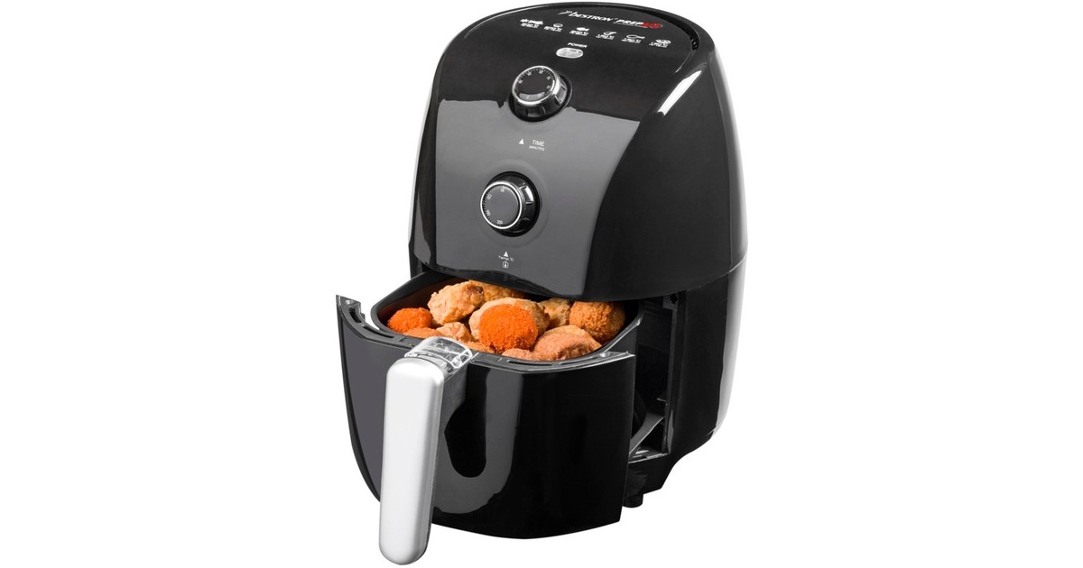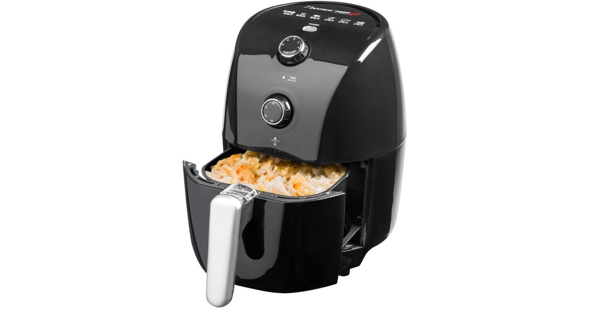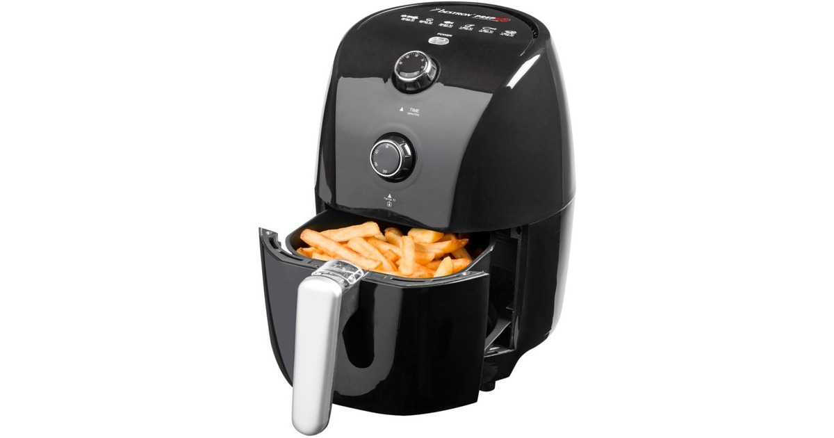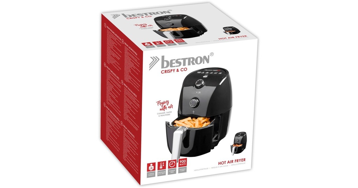 Mit der PrepAir Heißluftfritteuse AAF300 von Bestron kann man gesünder und sicherer Frittieren, Backen, Braten und Grillen, ohne Öl und ohne Fett. Durch die große Kapazität von ca. 1,5 Litern können zwei Portionen Pommes Frites oder Snacks gleichzeitig zubereitet werden. Die PrepAir eignet sich nicht nur für Pommes Frites und Snacks sowie Kartoffelprodukte sondern auch Fleisch, Fisch, Gemüse, Brot usw. Die einzigartige PrepAir-Technologie sorgt für gleichmäßiges Garen durch die schnelle Zirkulation der Luft. Die Bedienung ist intuitiv und komfortabel, man stellt einfach Temperatur und Zeit ein und es kann losgehen! Bis 200°C kann die Temperatur stufenlos eingestellt werden. Nach Ablauf des 30-Minuten-Timer ertönt ein Signal und das Gerät schaltet sich automatisch ab. Diese Art der Speisezubereitung ist nicht nur fettarm sondern es entstehen keine unangenehmen Gerüche. Die PrepAir AAF300 lässt sich nach dem Gebrauch sehr einfach reinigen, da Tablett und Frittierkorb antihaftbeschichtet und spülmaschinenfest sind. Für Sicherheit sorgen die Kontrollleuchten, der Überhitzungsschutz und die rutschfesten Füße. Art.-Nr.: 1494091