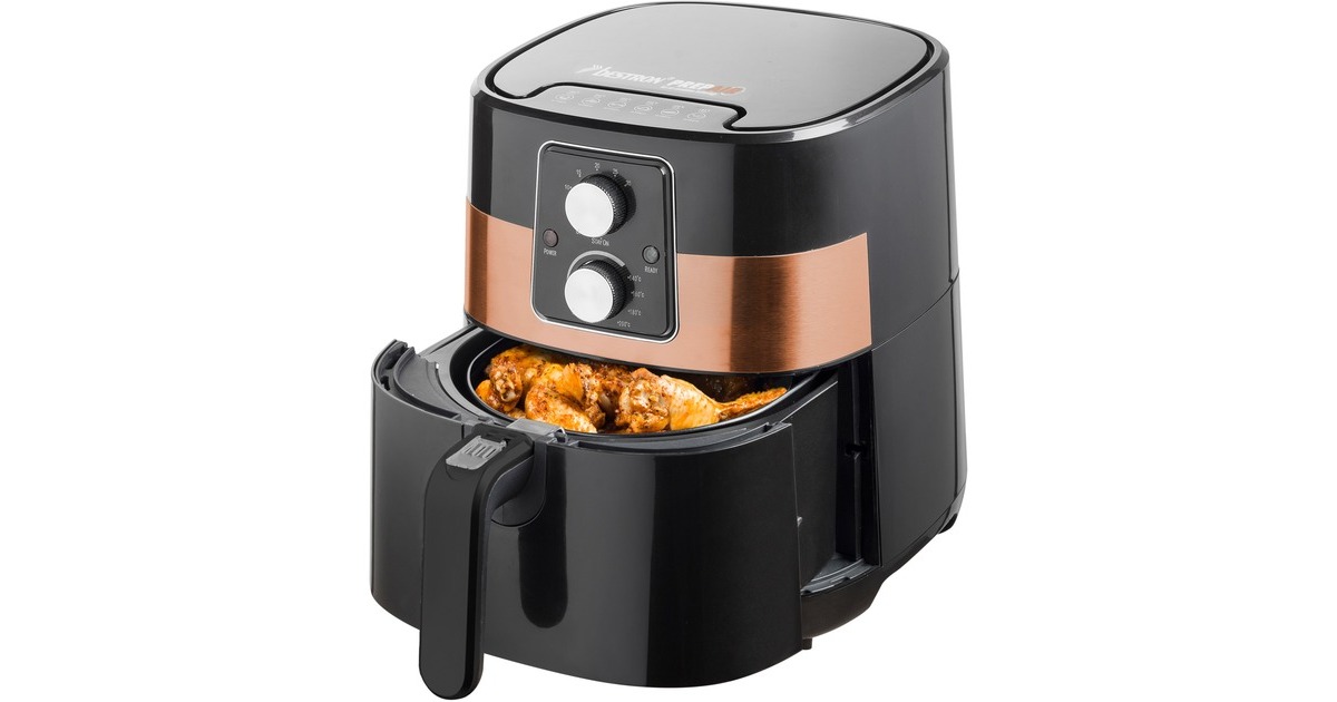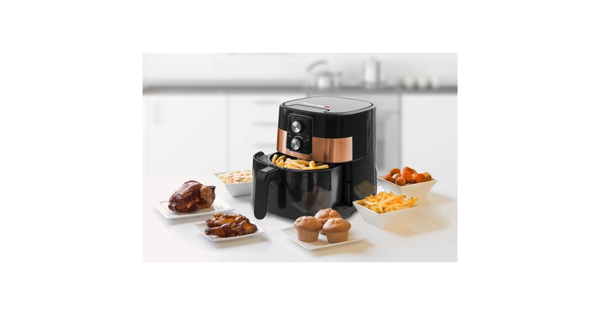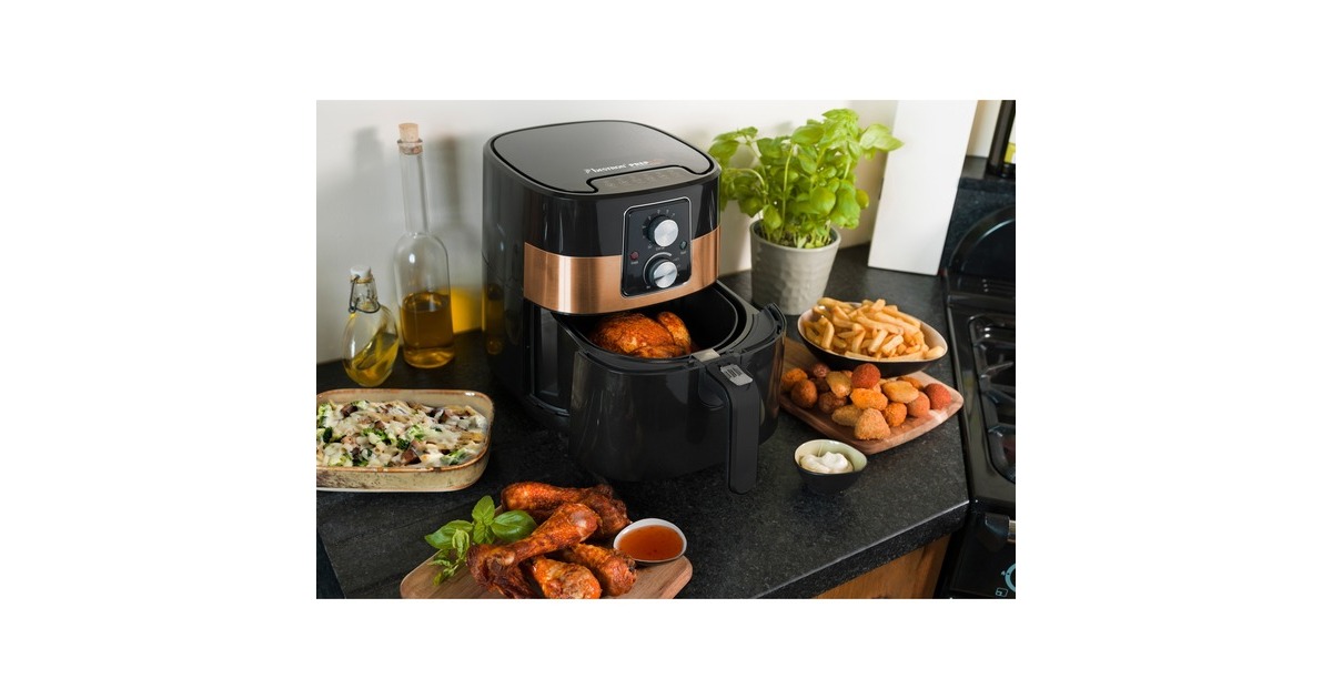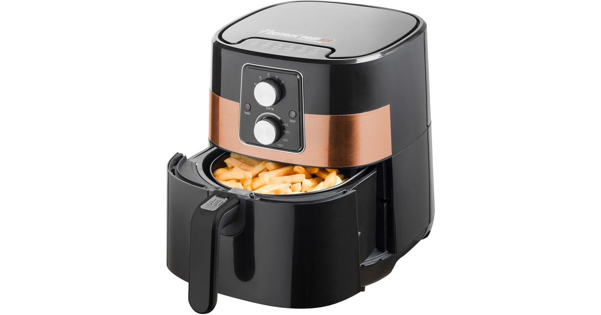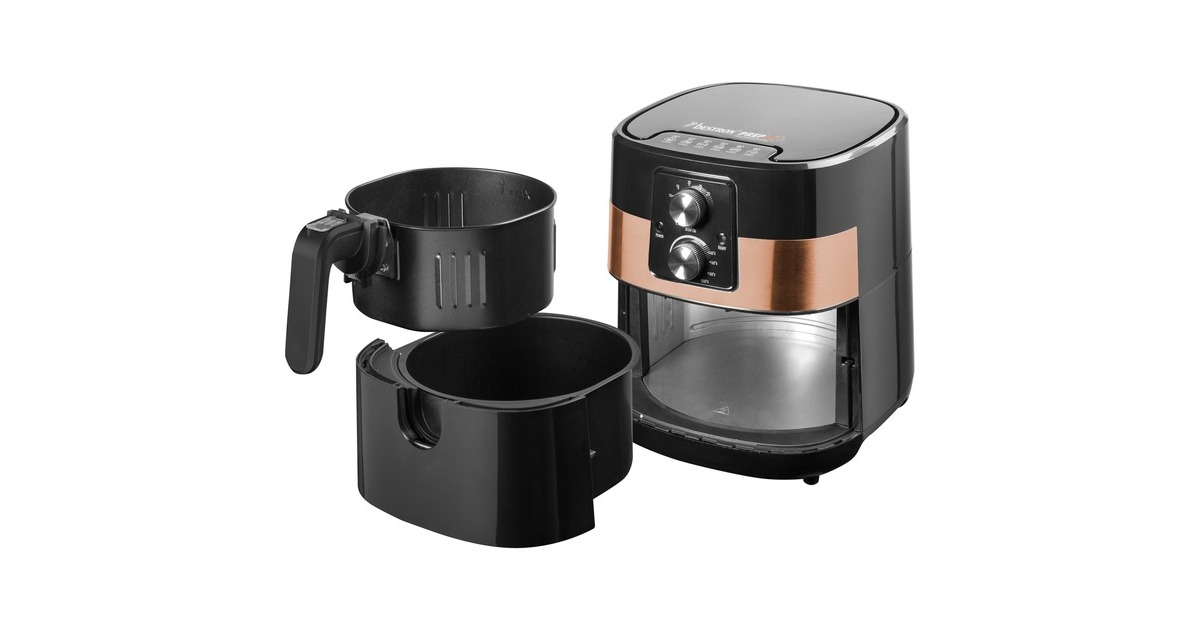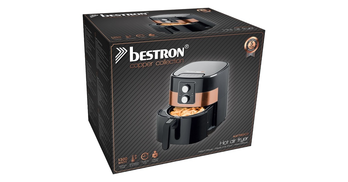 Mit der PrepAir AAF7003CO Heißluftfritteuse aus der Copper Collection in stielvollem Kuper-Design kann man gesünder und sicherer Frittieren, Backen, Braten und Grillen, ohne Öl und ohne Fett. Durch die große Kapazität von ca. 4 Litern können bis zu 1000 Gramm Pommes Frites oder 8 Snacks gleichzeitig zubereitet werden. Die PrepAir eignet sich nicht nur für Pommes Frites und Snacks sowie Kartoffelprodukte sondern auch Fleisch, Fisch, Gemüse, Brot usw. Die einzigartige PrepAir-Technologie sorgt für gleichmäßiges Garen durch die schnelle Zirkulation der Luft. Die Bedienung ist intuitiv und komfortabel, man stellt einfach Temperatur und Zeit ein und es kann losgehen! Bis 200°C kann die Temperatur stufenlos eingestellt werden. Nach Ablauf des 30-Minuten-Timer ertönt ein Signal und das Gerät schaltet sich automatisch ab. Diese Art der Speisezubereitung ist nicht nur fettarm sondern es entstehen keine unangenehmen Gerüche. Die PrepAir AAF7003CO lässt sich nach dem Gebrauch sehr einfach reinigen, da Behälter und Frittierkorb antihaftbeschichtet und spülmaschinenfest sind. Für Sicherheit sorgen die Kontrollleuchten, der Überhitzungsschutz und die rutschfesten Füße. Art.-Nr.: 1742301