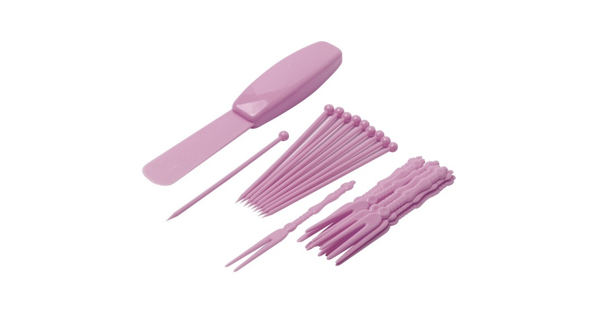10 Kunststoff-Spieße, 10 Gabeln, Spatel |
