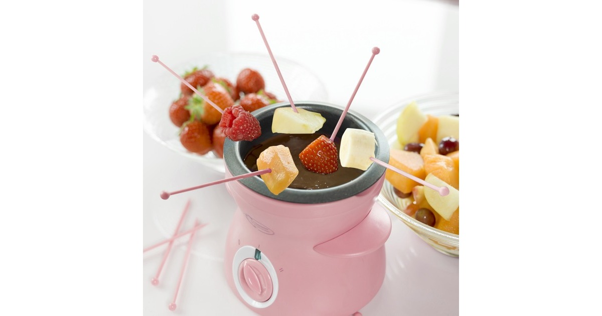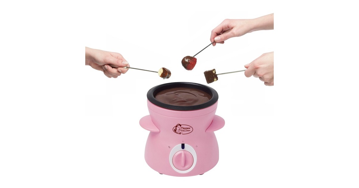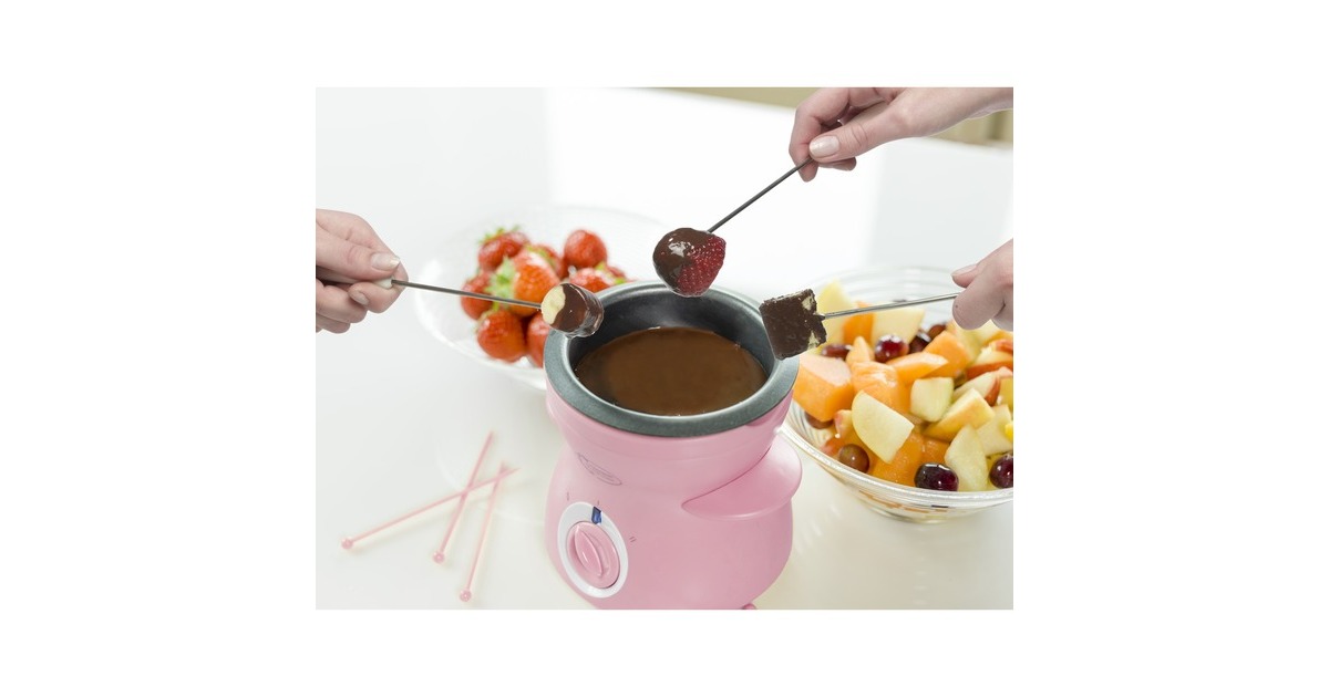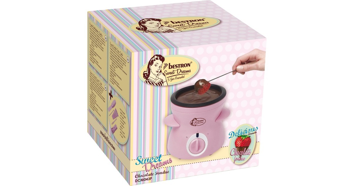 Das Bestron Schokoladen-Fondue DCM043P eignet sich nicht nur als klassisches Schokoladen-Fondue, es eignet sich auch ideal zum Schmelzen von Schokolade und Candy Melts für die Dekoration von Muffins, Cakepops, Donuts, Kuchen usw. Die Bedienung erfolgt über einen Drehregler mit Kontrollleuchte, zur Auswahl stehen zwei Heizstufen, eine zum Aufwärmen/ Schmelzen und eine zum Warmhalten. Dazu verfügt das DCM043P über eine herausnehmbare 0,3 l Schale mit Antihaftbeschichtung und im Lieferumfang sind zehn Kunststoffgabeln, zehn Spieße sowie ein Spatel enthalten. Um die Reinigung noch weiter zu vereinfachen, ist die Schale spülmaschinengeeignet.Art.-Nr.: 1742149