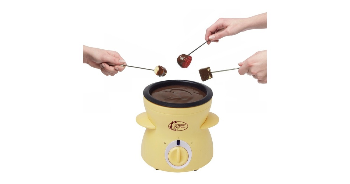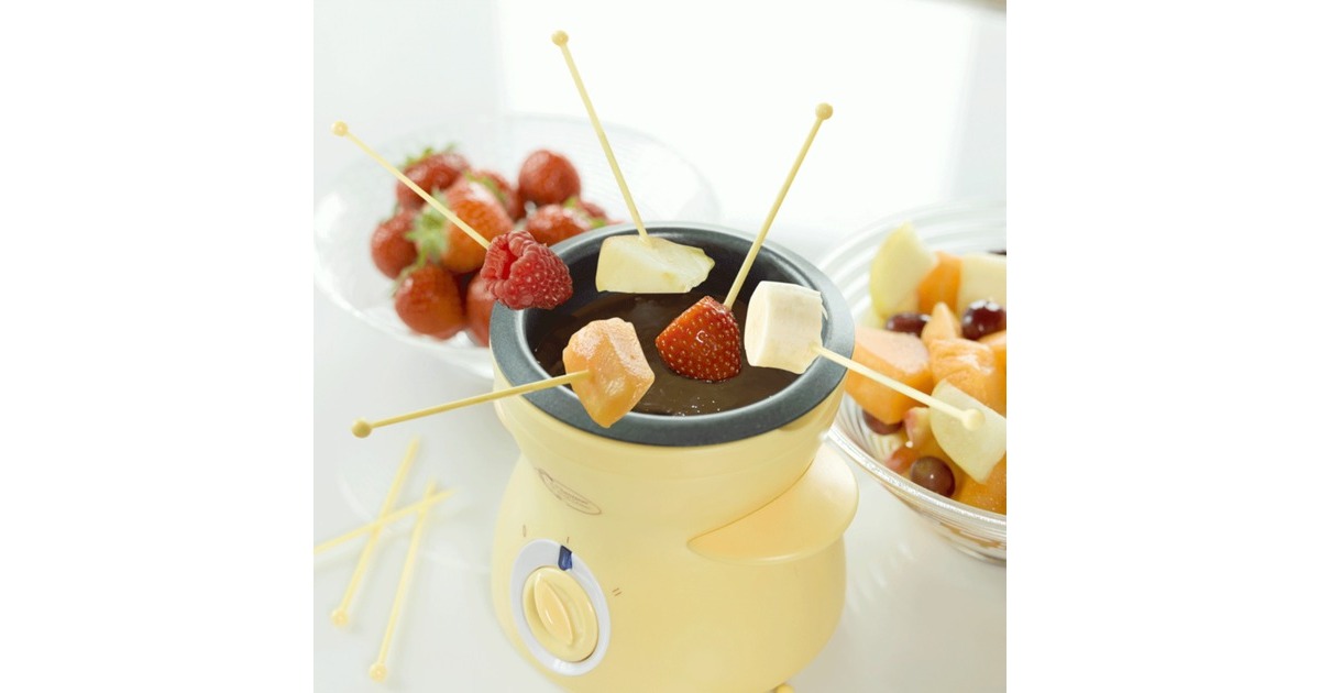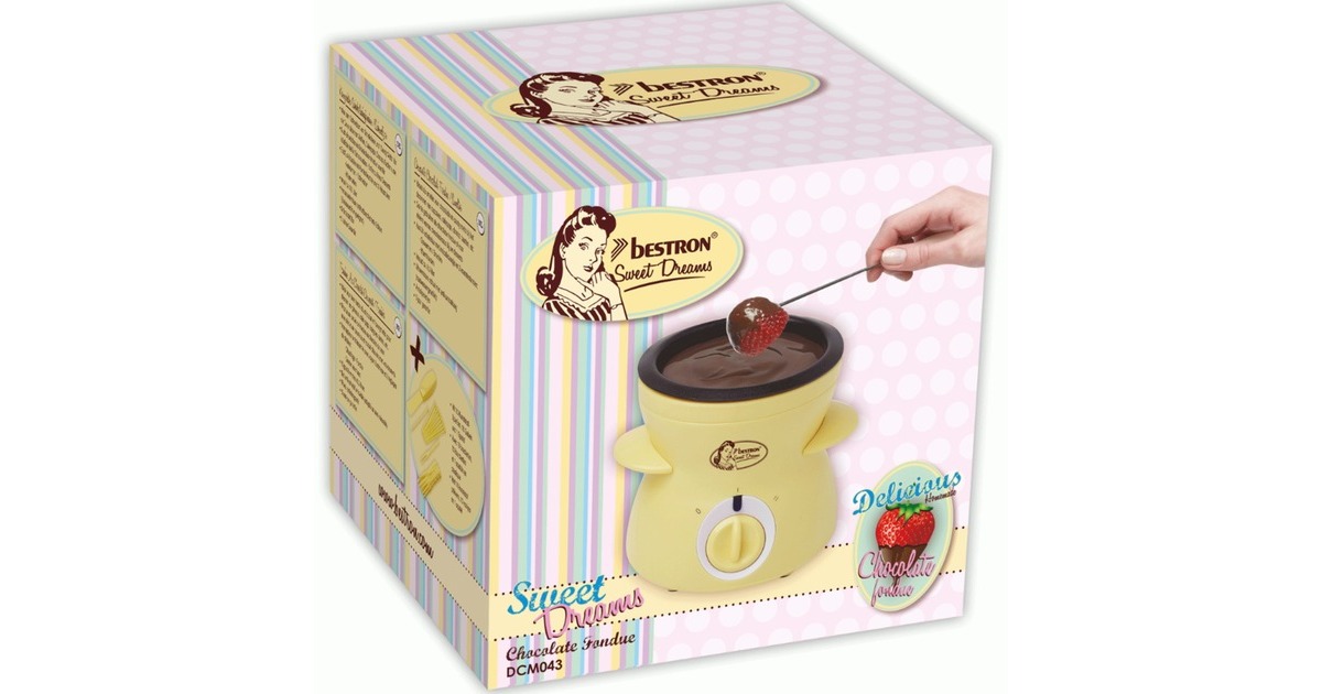 Das Bestron Schokoladenfondue ist ideal zum Schmelzen von Schokolade, für köstliche heiße Schokoladensoße zu Desserts und `Candy Melts´ für die Dekoration von Muffins, Cakepops, Donuts, Kuchen usw. Mit einem Ein/Aus-Schalter mit Kontrollleuchte und 2 Heizstufen zum Aufwärmen / Schmelzen und Warmhalten ist die Bedienung sehr leicht. Die antihaftbeschichtete Schale fasst 300 ml und ist zur einfachen Reinigung herausnehmbar und spülmaschinenfest. Die Antirutschfüße sorgen für einen festen Stand. Art.-Nr.: 1435773