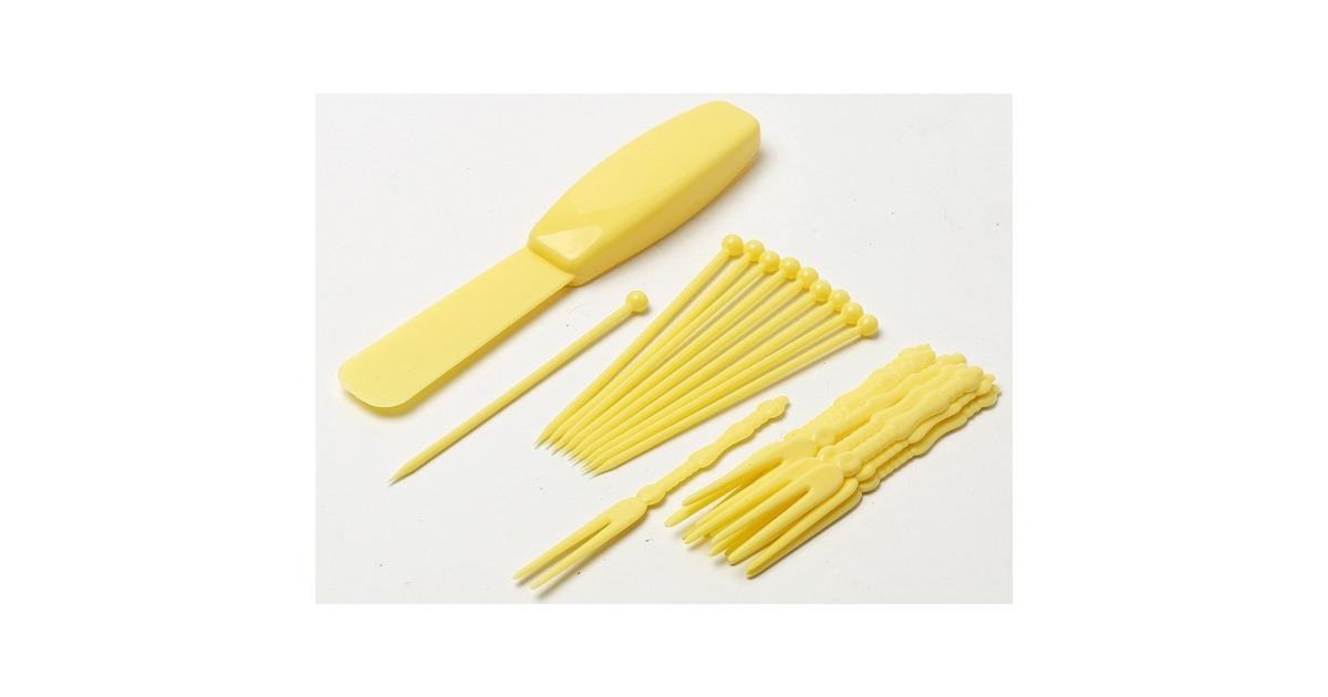 10 Kunststoff-Spieße, 10 Gabeln und 1 Spatel |