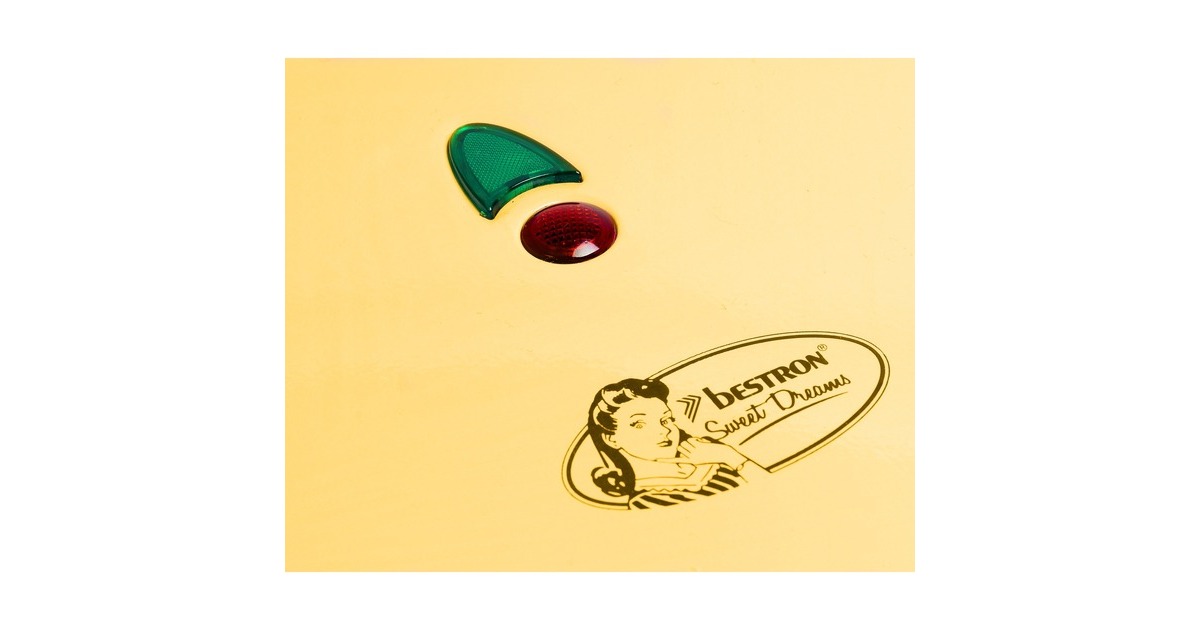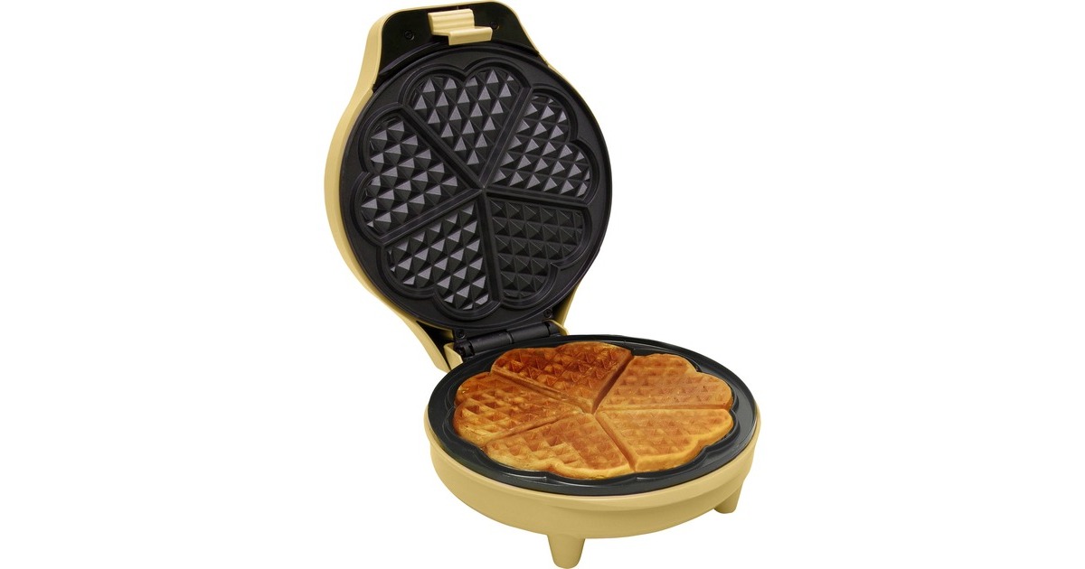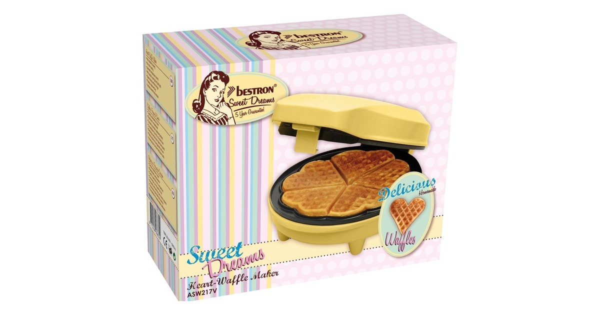 Mit dem Waffeleisen ASW217V von Bestron lassen sich herrliche Herzwaffeln zaubern. Mit der automatischen Temperaturregelung und der praktischen Kontrollleuchte für “gebrauchsfertig” und “An/Aus” sind viele Waffel-Variationen möglich. Das Gehäuse in zartem Gelb ist wärmeisoliert. Für Sicherheit sorgen die Antirutschfüße. Die Reinigung ist dank der Antihaftbeschichtung ein Kinderspiel. Art.-Nr.: 1820273