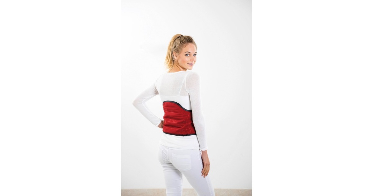 körpergerechte Form für Bauch, Rücken, Gelenke; zusammengerollt als Nackenheizkissen verwendbar; leichte Fixierung; elastisches Verlängerungsband |
