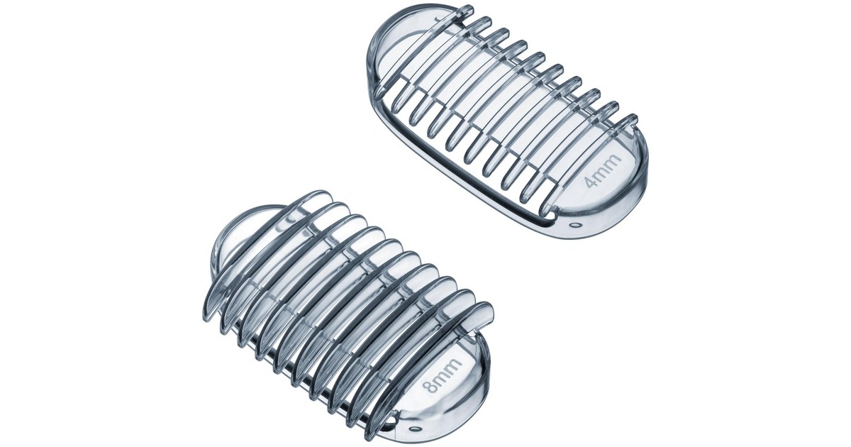 2 Kammaufsätze (4 mm und 8 mm), Peelingaufsatz, Gleitaufsatz |