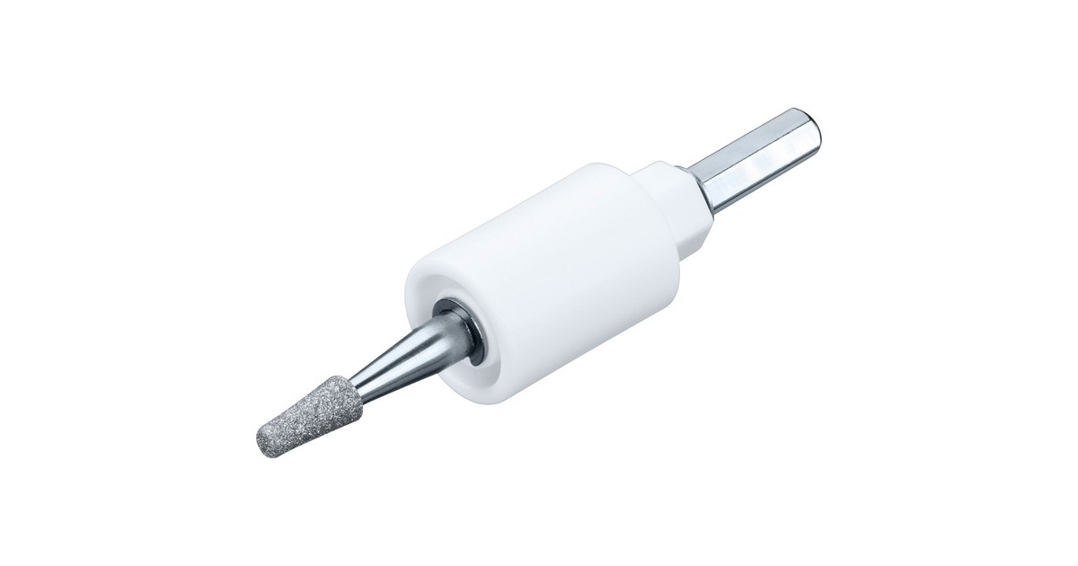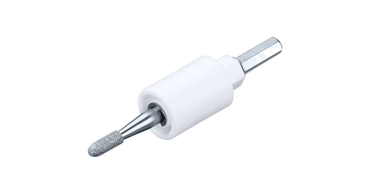 Aufsätze aus Saphir und Filz: Saphirkegel, Filzkegel, grobe Saphirscheibe, feine Saphirscheibe, Flammenfräser, Zylinderfräser, Saphir-Hornhautschleifer |